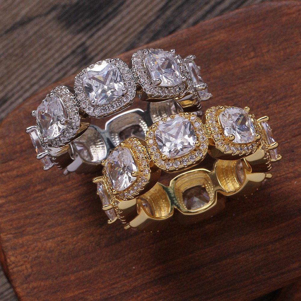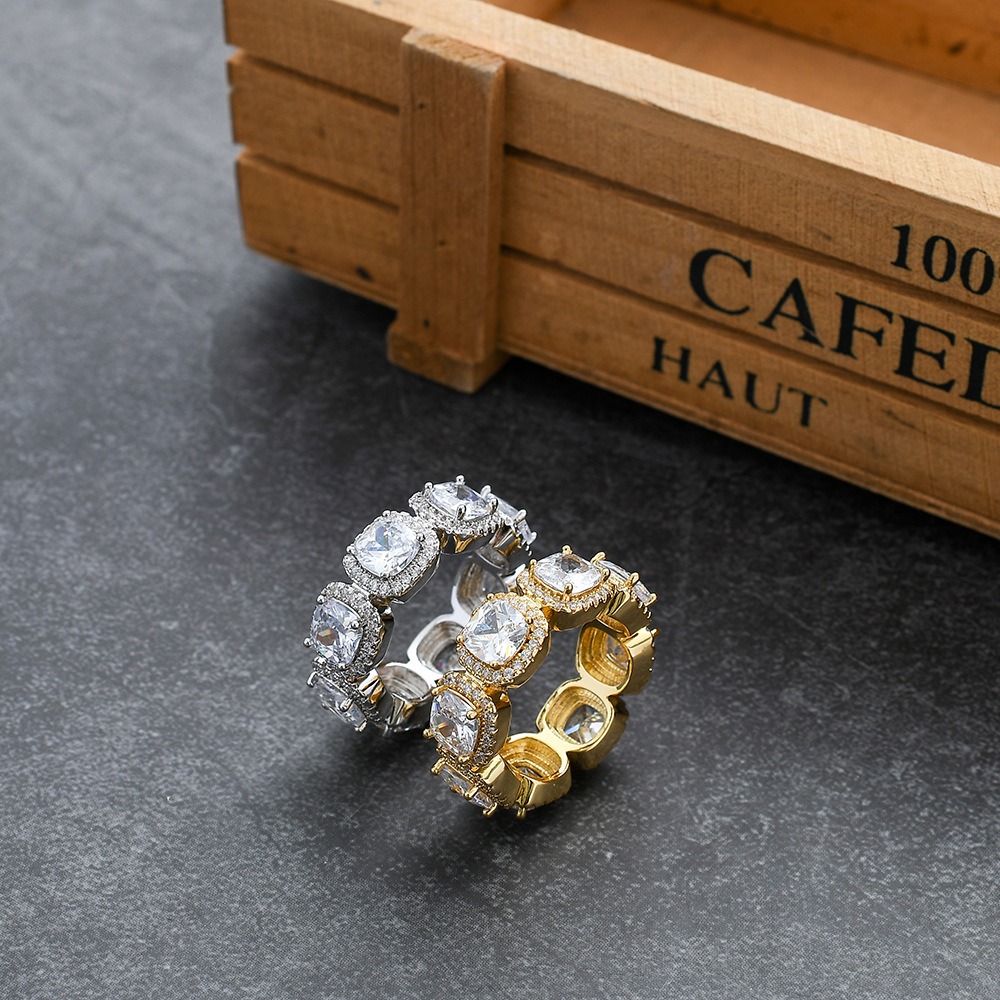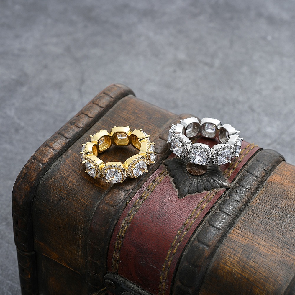 Hip Hop Ring Copper Inlaid Zircon 9mm Square Cuban Ring Couple Ring