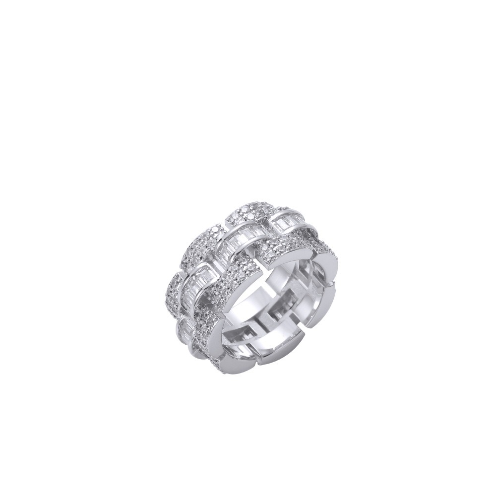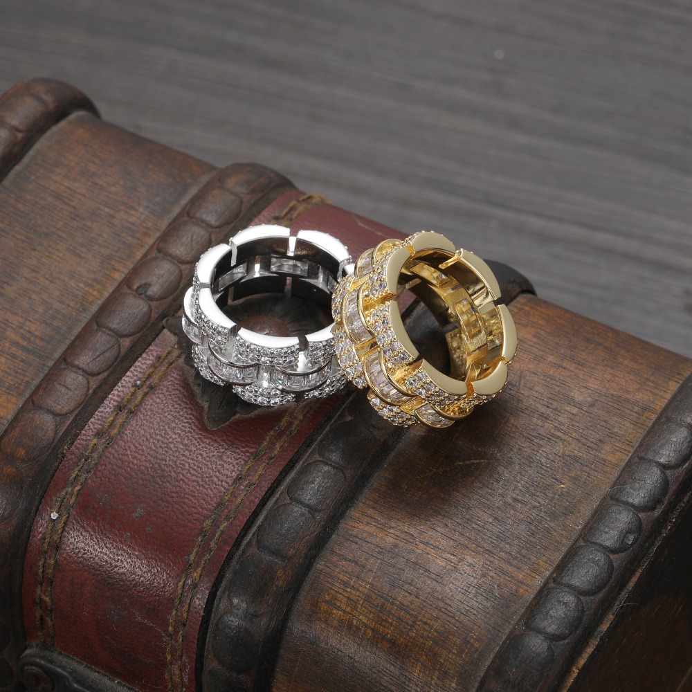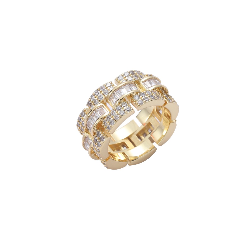 Hip Hop Ring Copper Inlay Zircon 11mm 3 Layer Interlaced Zircon Cuban Ring Men’s Ring