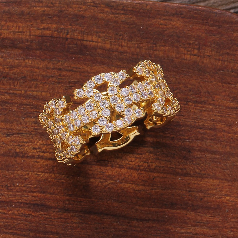 Hip Hop Ring Copper Inlay Zircon Cutout Geometric Pattern Cuban Ring Women’s Ring
