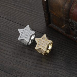 Hip Hop Ring Copper Inlay Zircon Pentagram Three-Dimensional Zircon Cuban Ring Men’s Ring