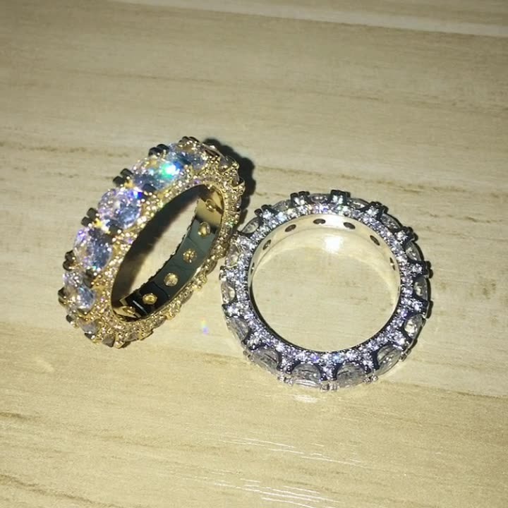 Hip Hop Rings Copper Inlaid Zircon Round 4 Prongs Cuban Rings Couple Rings
