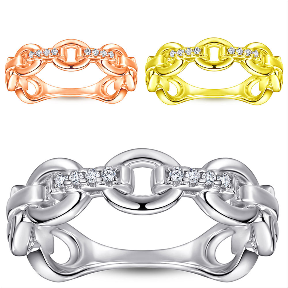Hot Sale 925 Silver Chain Rings Women’s Ins Tide Europe and America Rose Gold Plated Hollow Zircon Women’s Rings