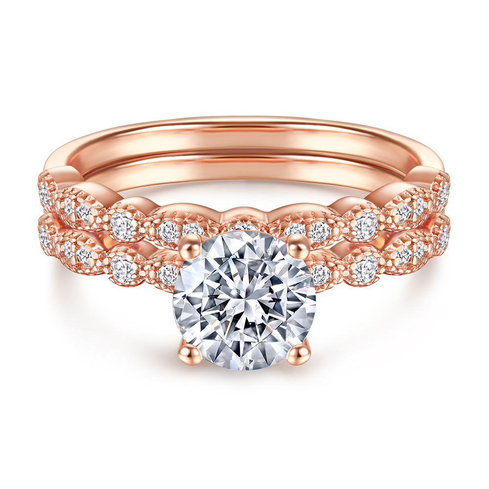 Hot sale European and American fashion S925 silver rose gold ring two-in-one combination ring