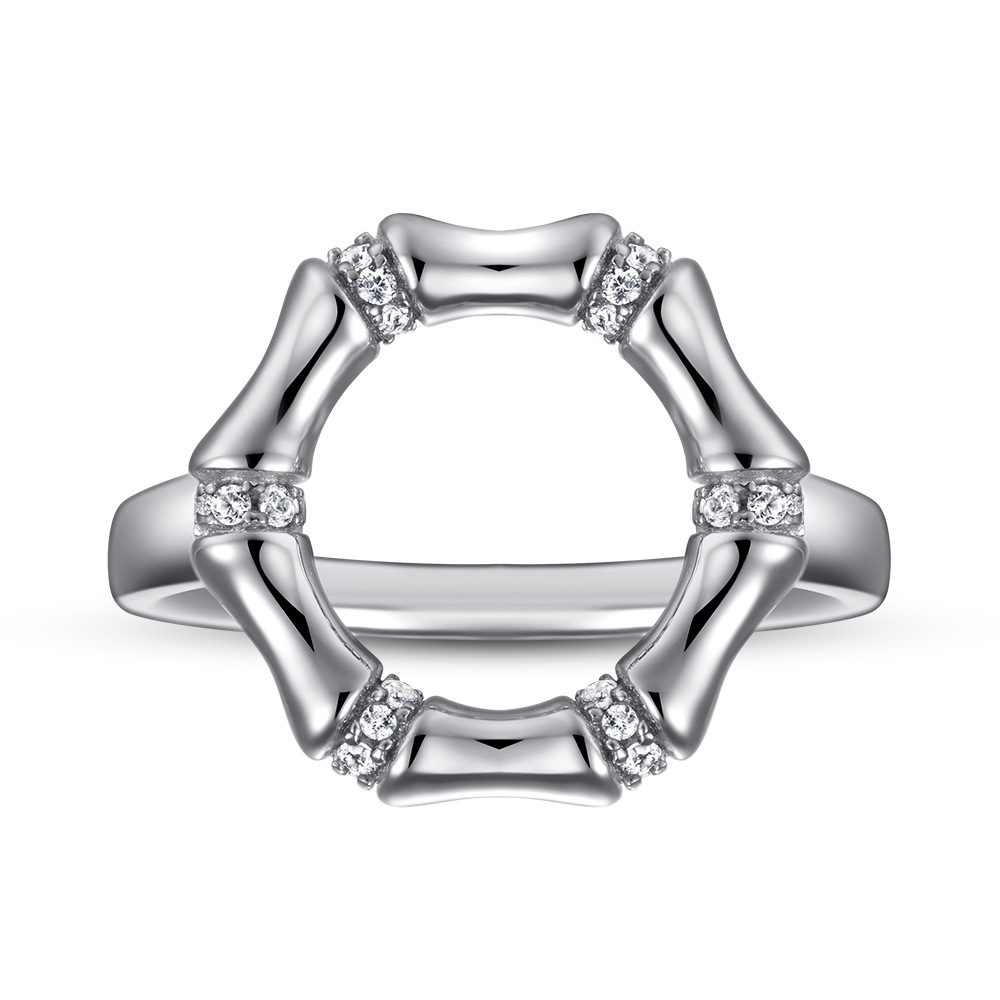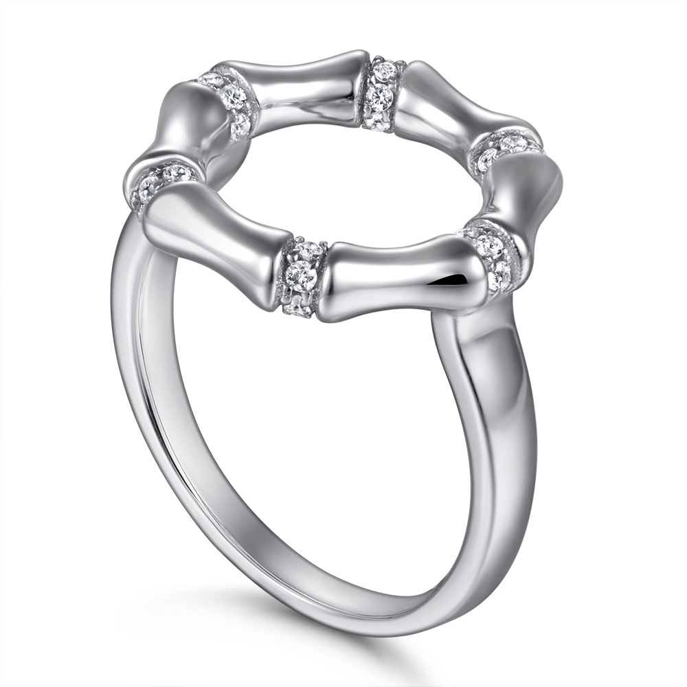 Hot Sale Rings Europe and America Fashion Round Bamboo Inlaid Zircon 925 Silver Ring Women Wholesale
