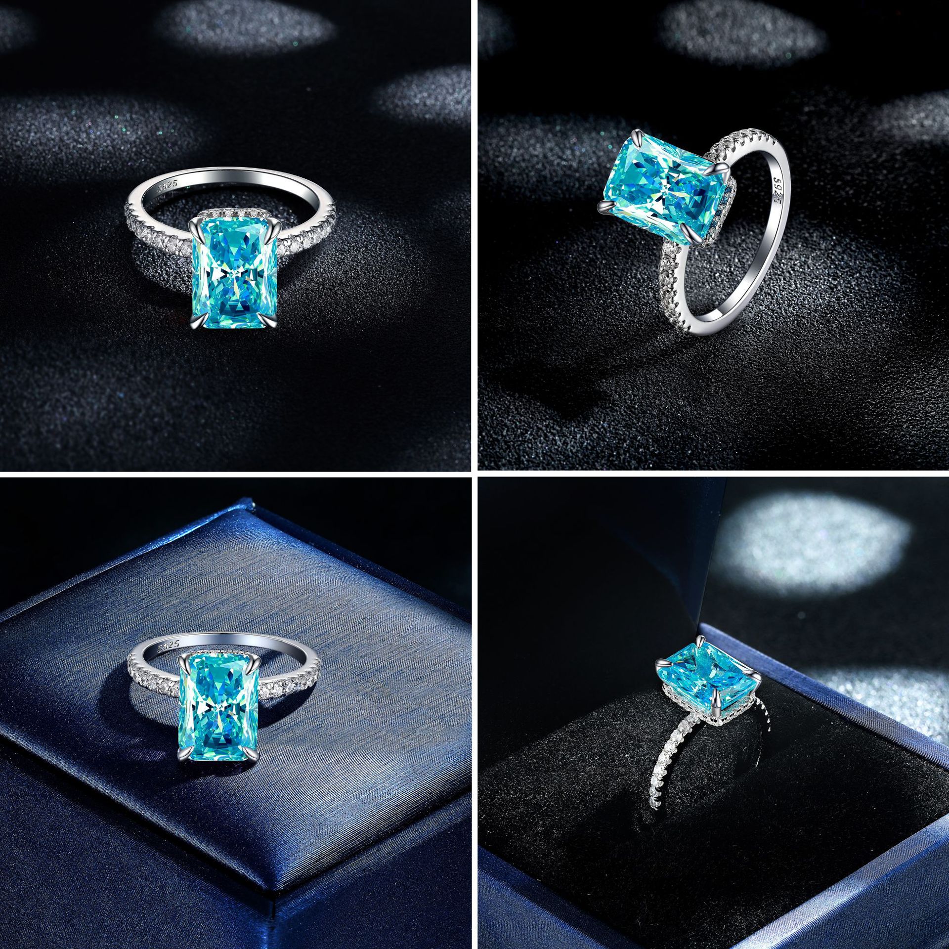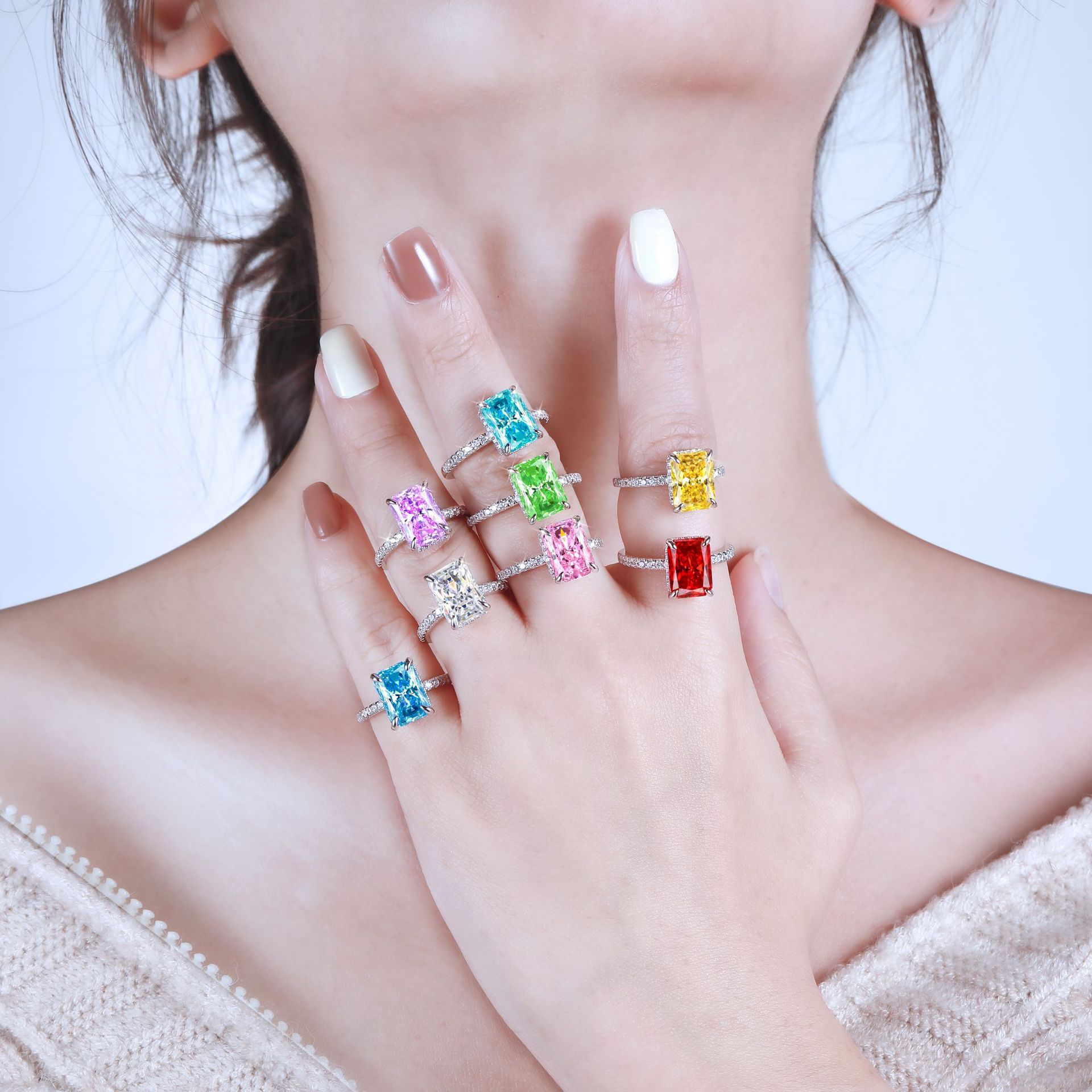 Hot Sale S925 Sterling Silver High Carbon Diamond Ring Women’s Luxury Ice Flower Cut Zircon 8*11 Colored Treasure Women’s Ring Sense of Luxury