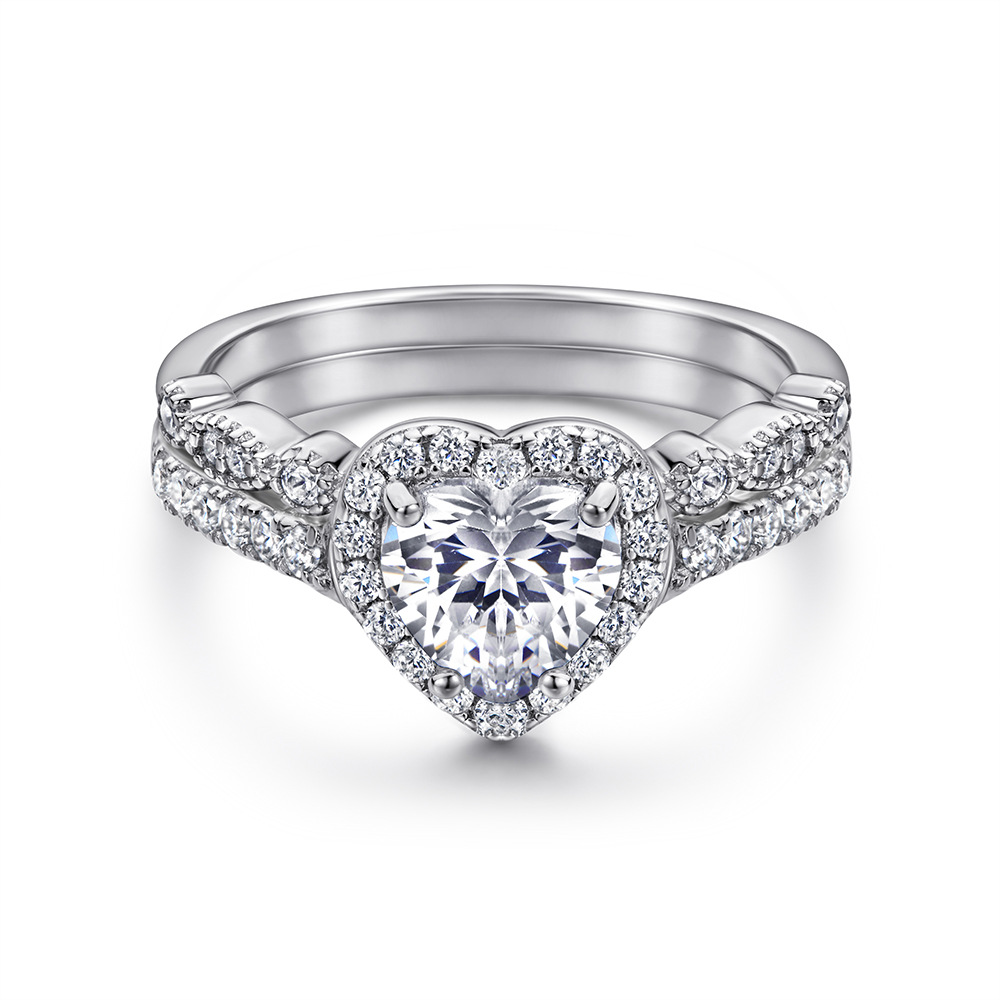 Hot Selling 925 Sterling Silver Love Ring Set Heart Shaped Zircon European and American Combination Women’s Ring