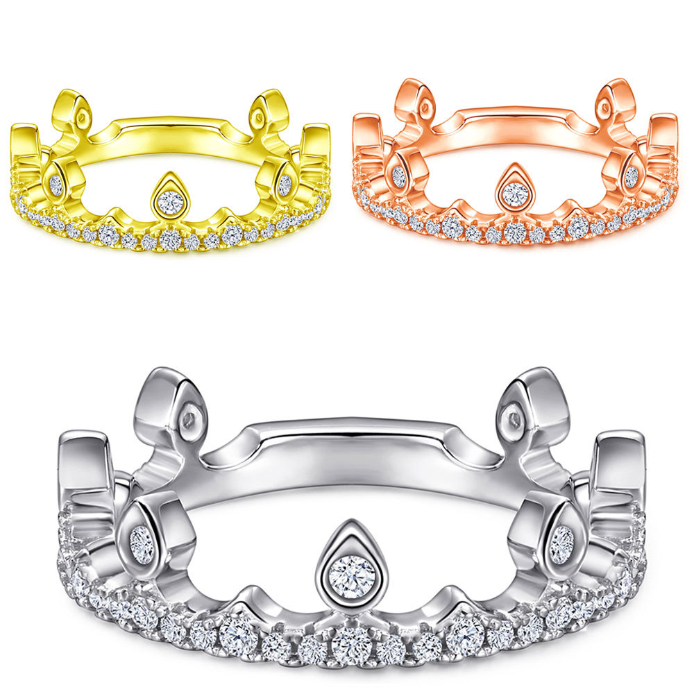 Hot selling s925 silver ring does not fade princess crown inlaid zircon jewelry wholesale