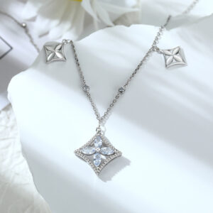 Jewelry 925 sterling silver clover zircon necklace women’s high-end sense of light luxury silver jewelry European and American pendant