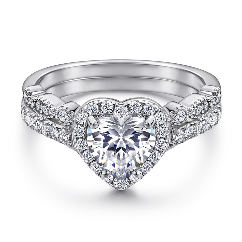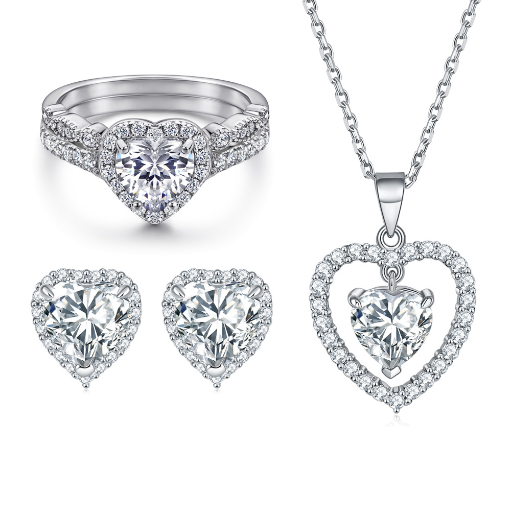 Jewelry set 925 sterling silver love rings heart-shaped necklaces zircon earrings