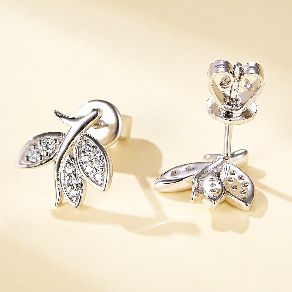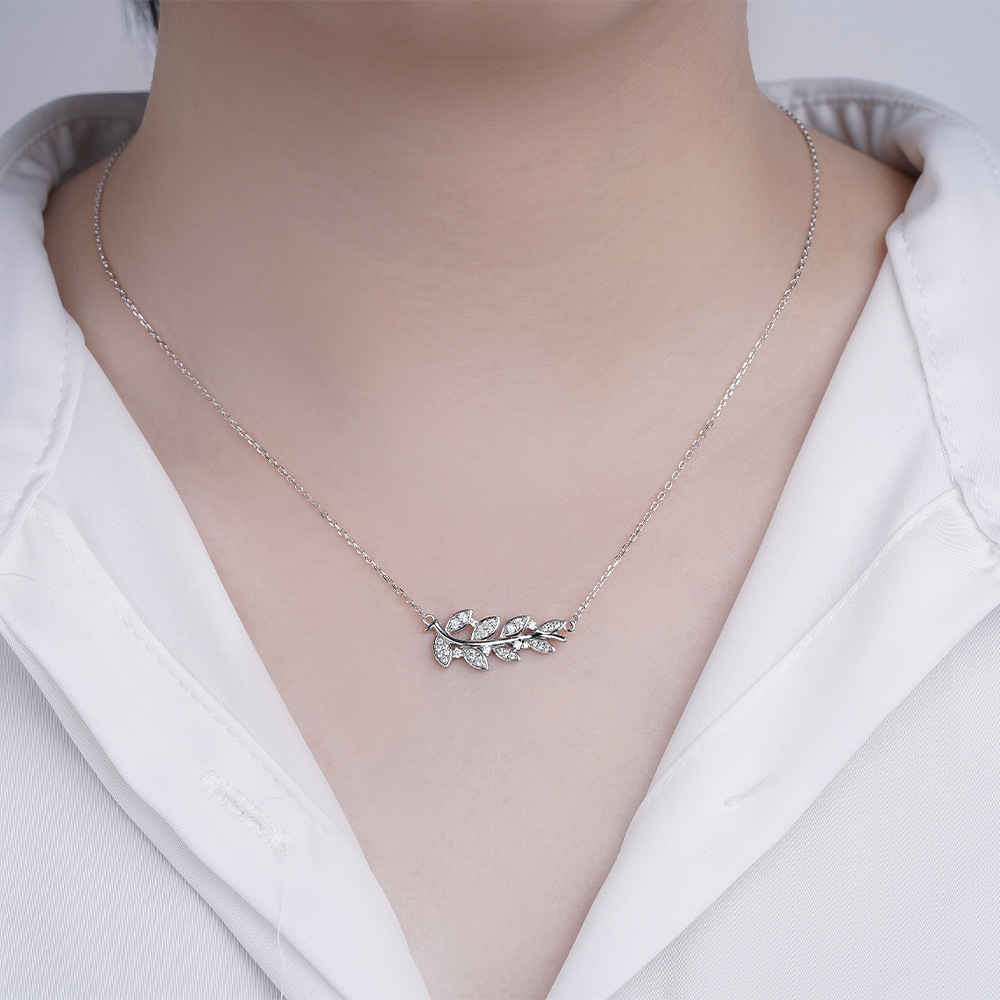 Jewelry set of three 925 sterling silver full diamond leaf ring leaf necklace women’s flower earrings