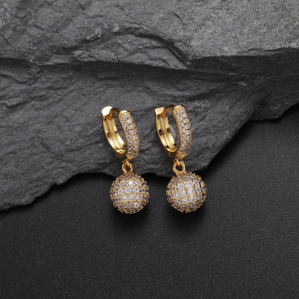 + Free ShippingHip Hop copper inlaid zircon earrings ball studs