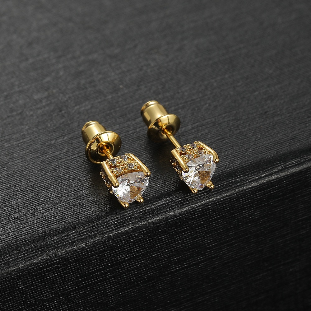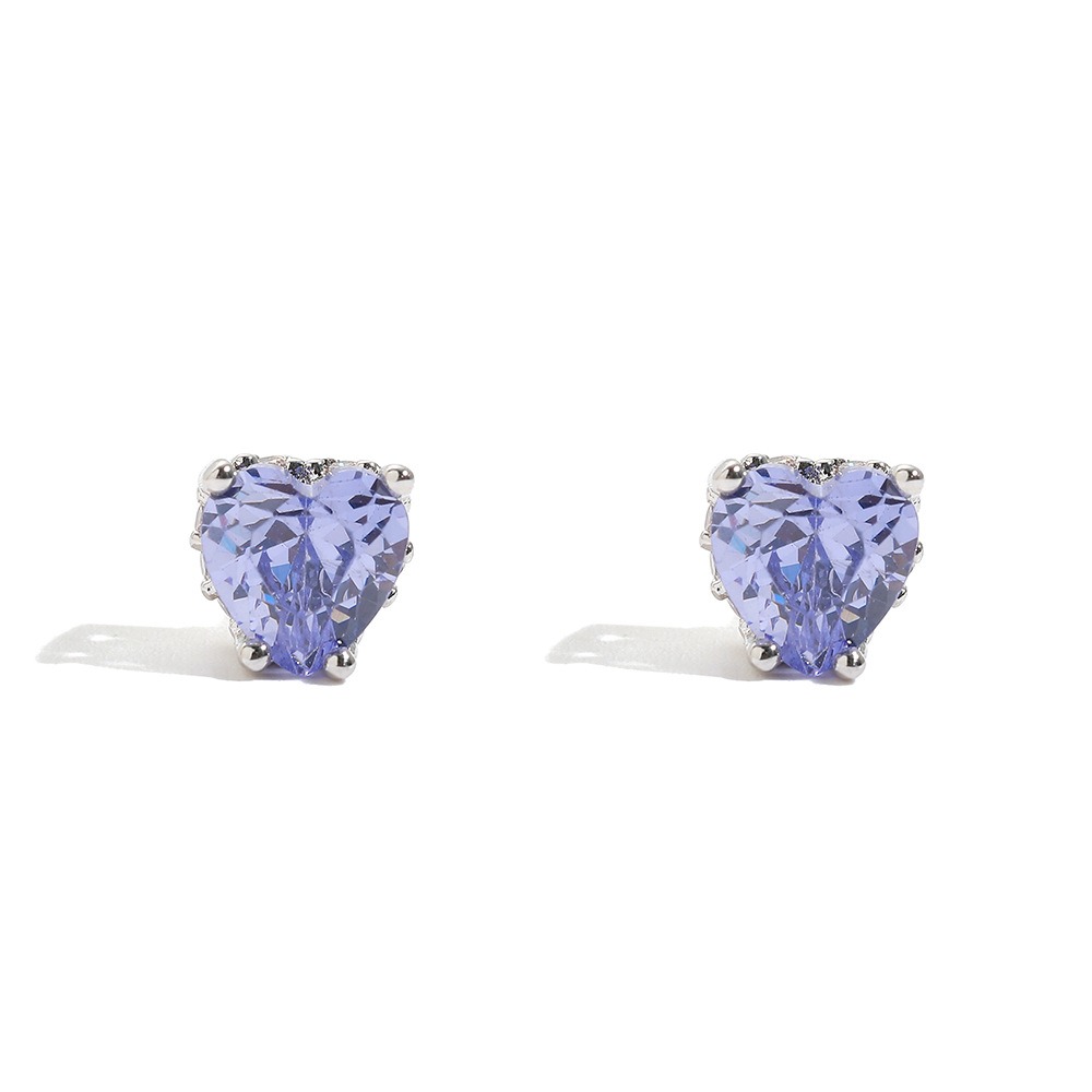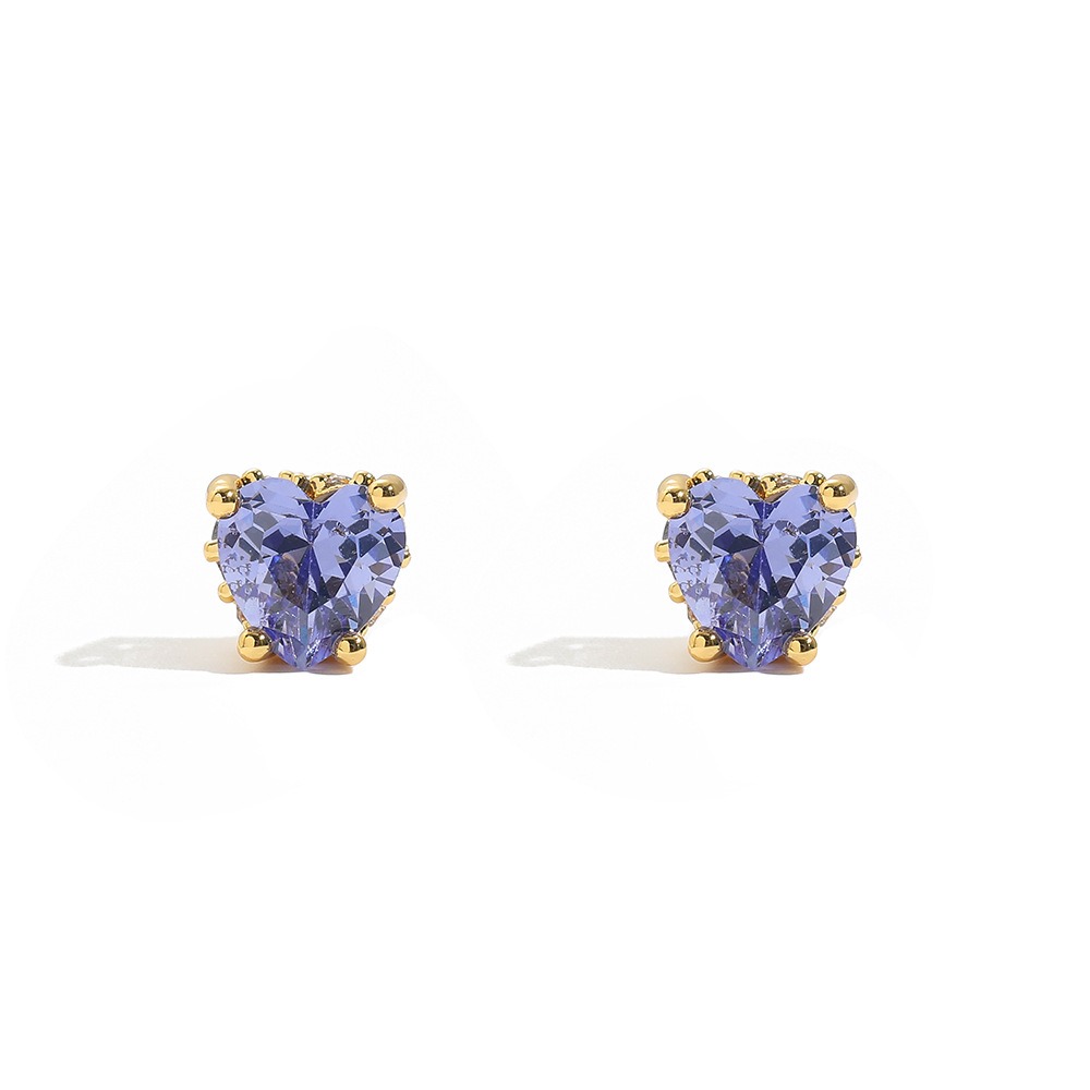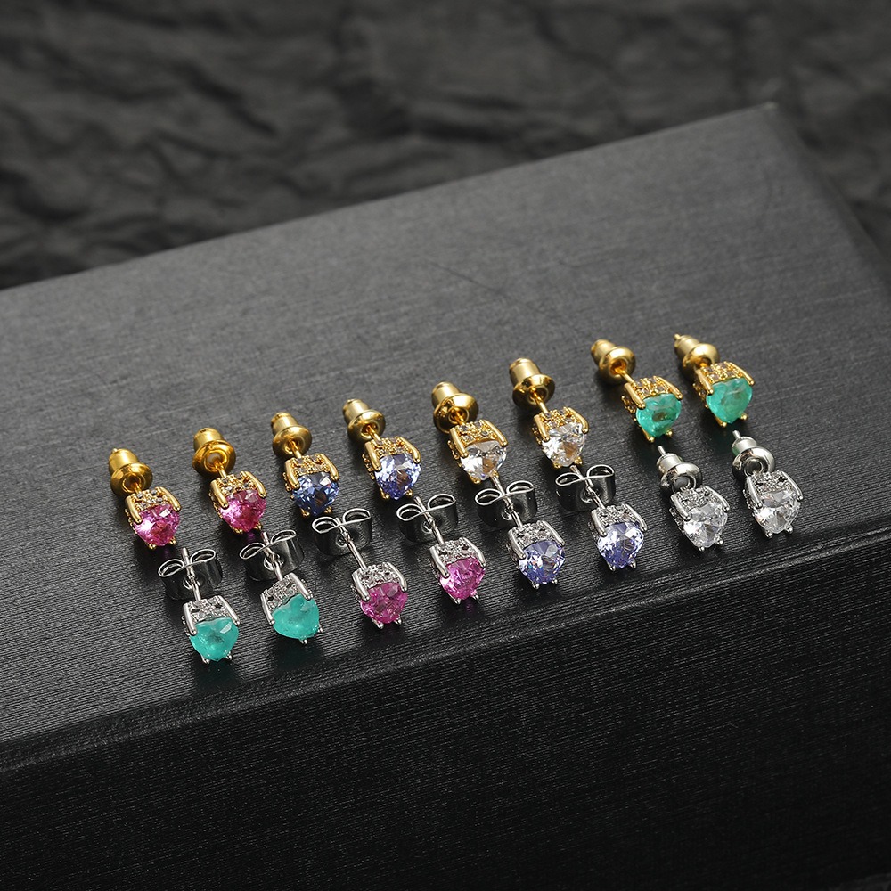 + Free ShippingHip Hop Copper Inlaid Zircon Earrings 5mm Colored Zircon Heart Stud Earrings