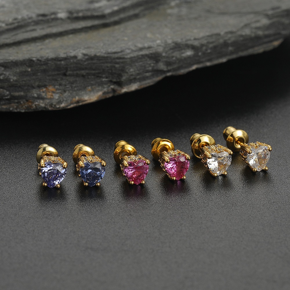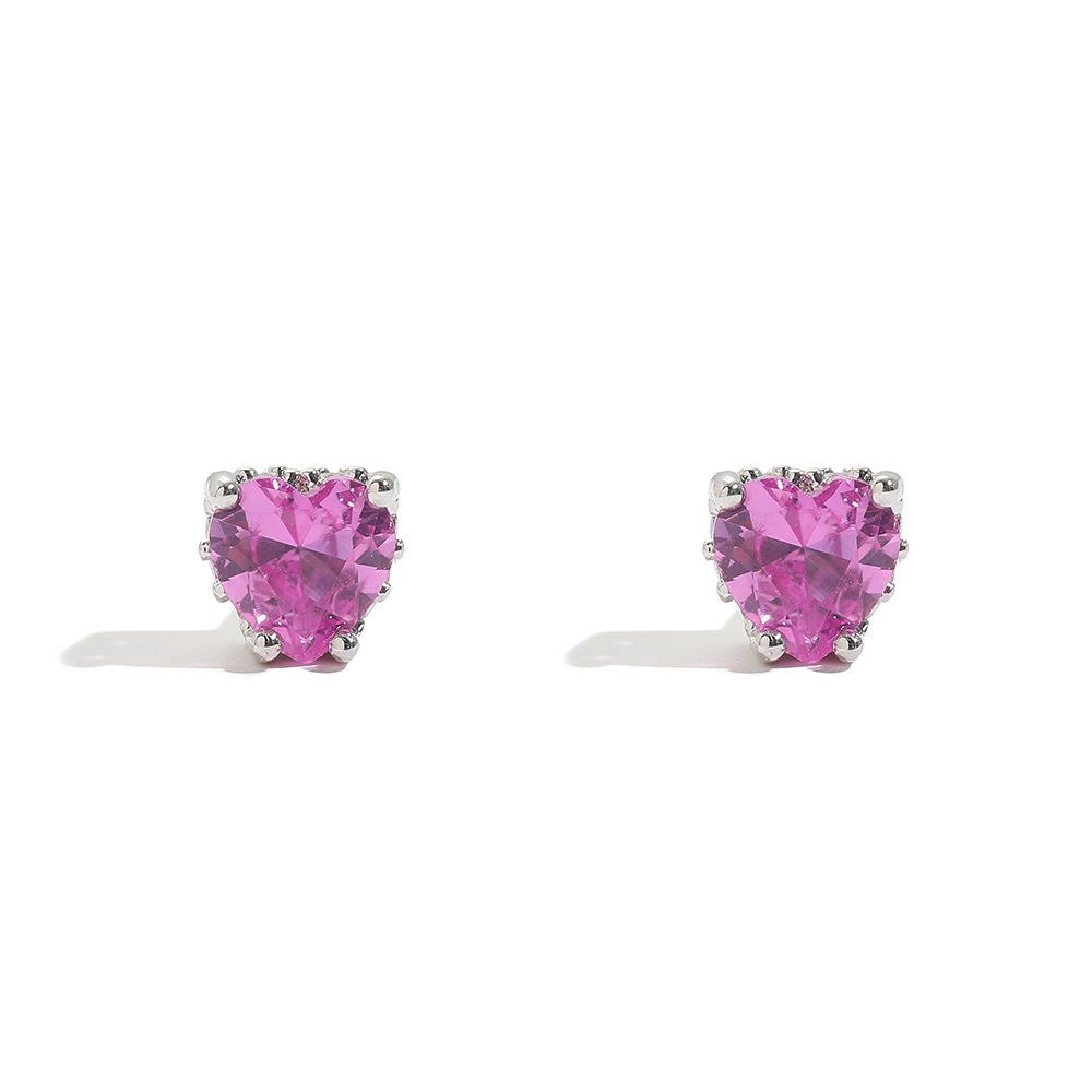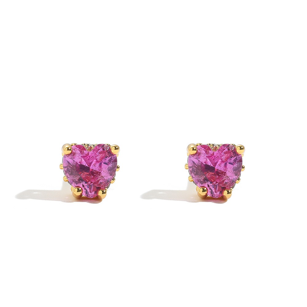 Hip Hop Copper Inlaid Zircon Earrings 5mm Colored Zircon Heart Stud Earrings