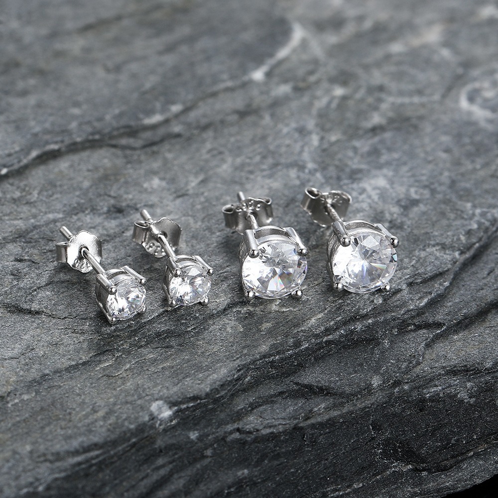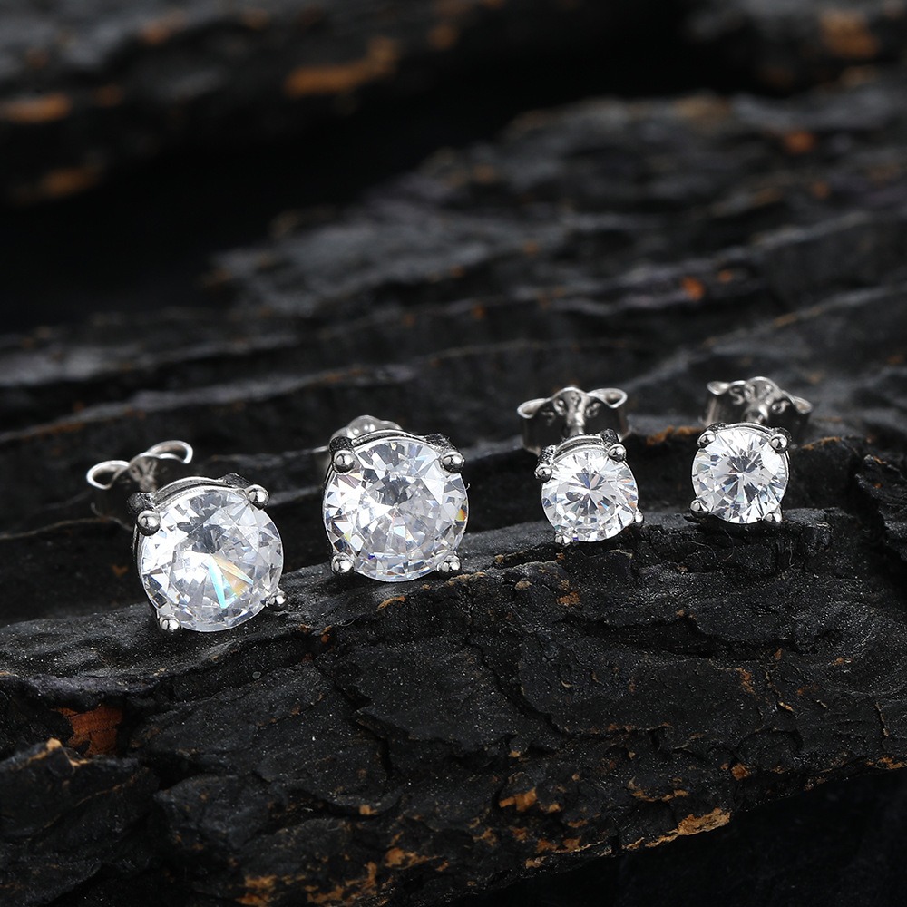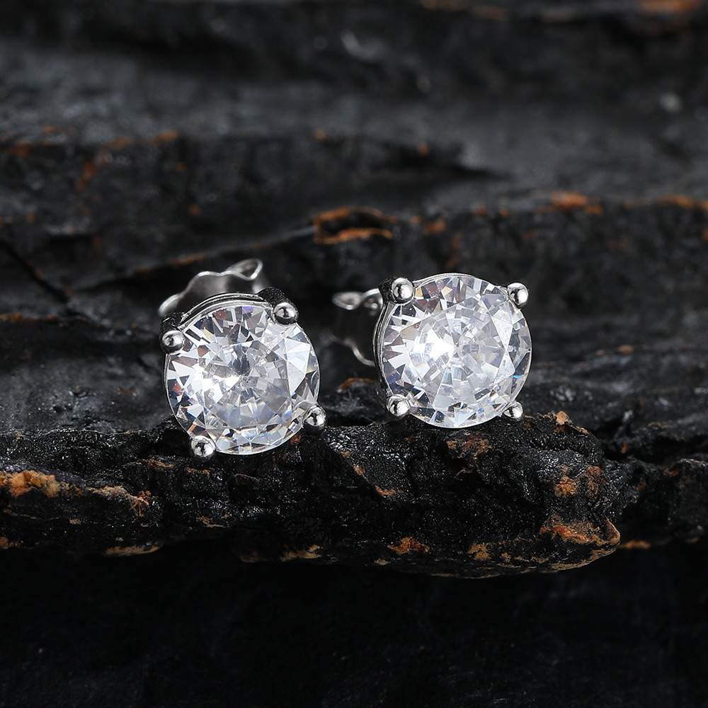 Hip Hop copper inlaid zircon earrings round studs