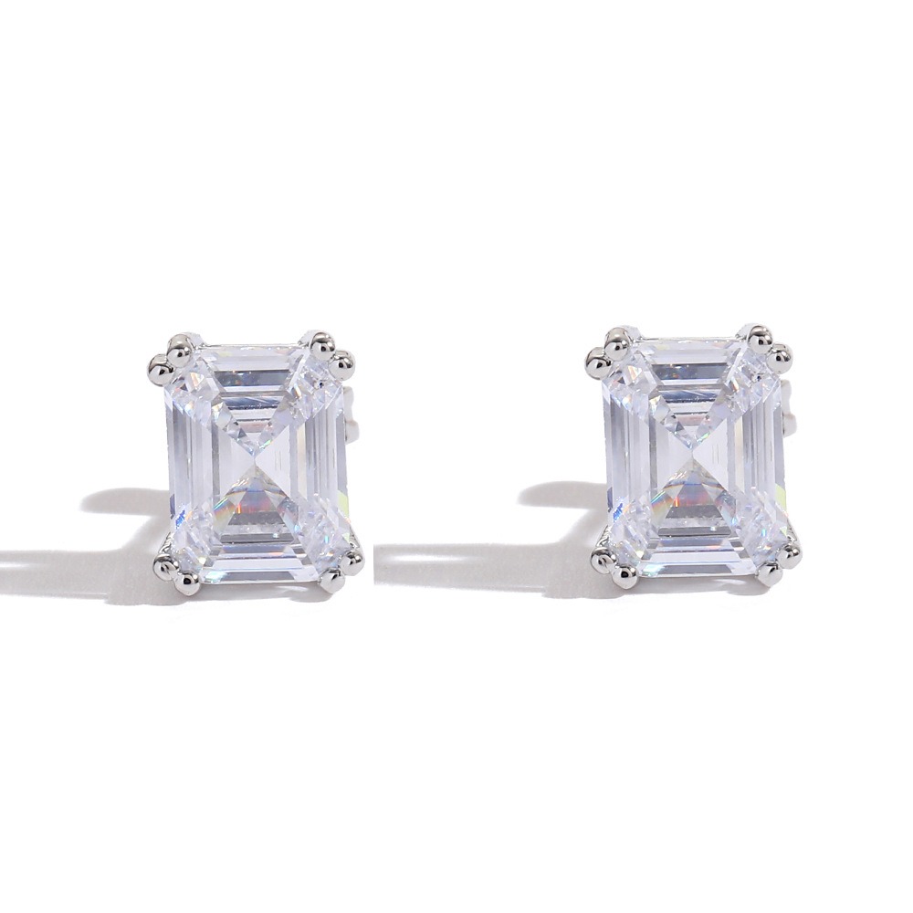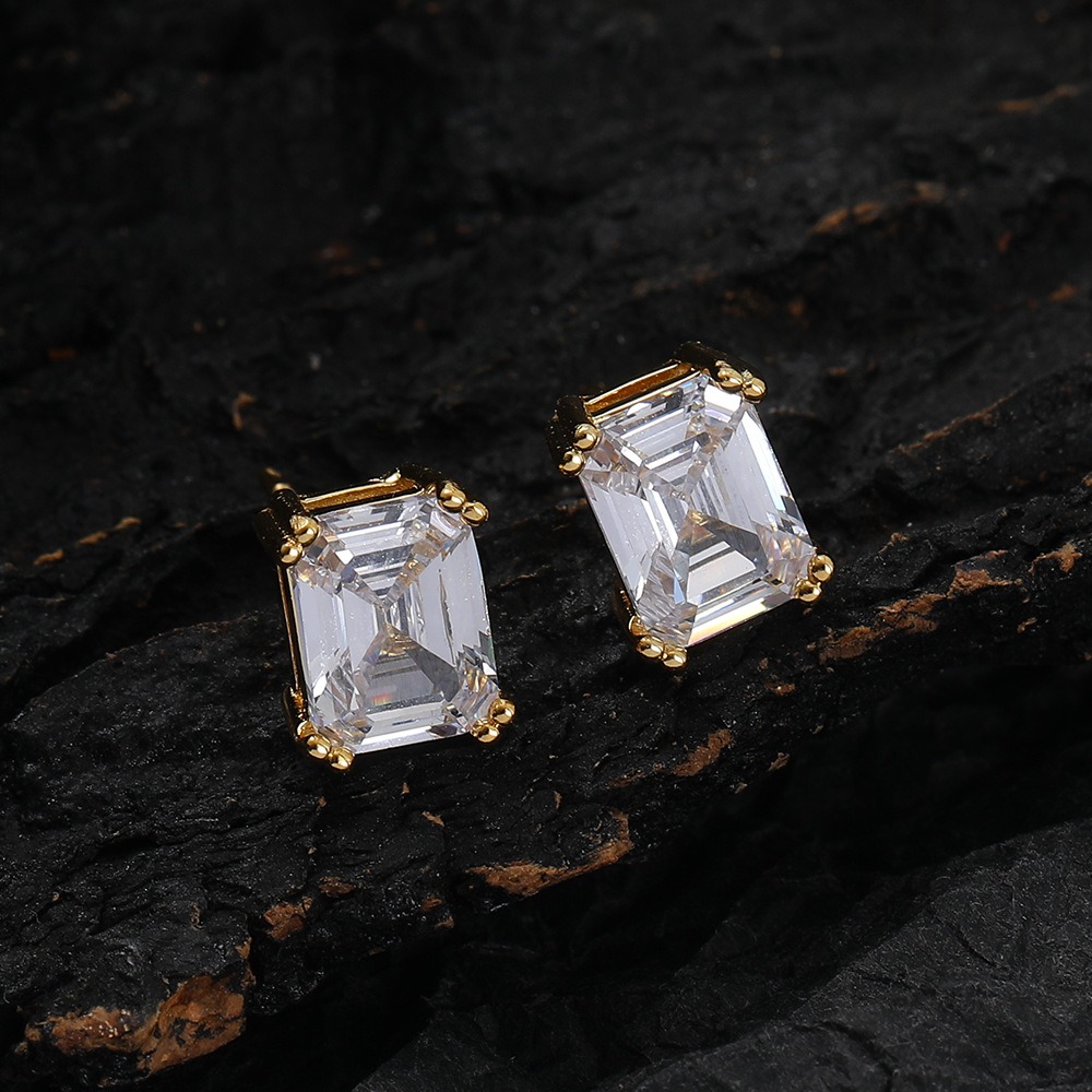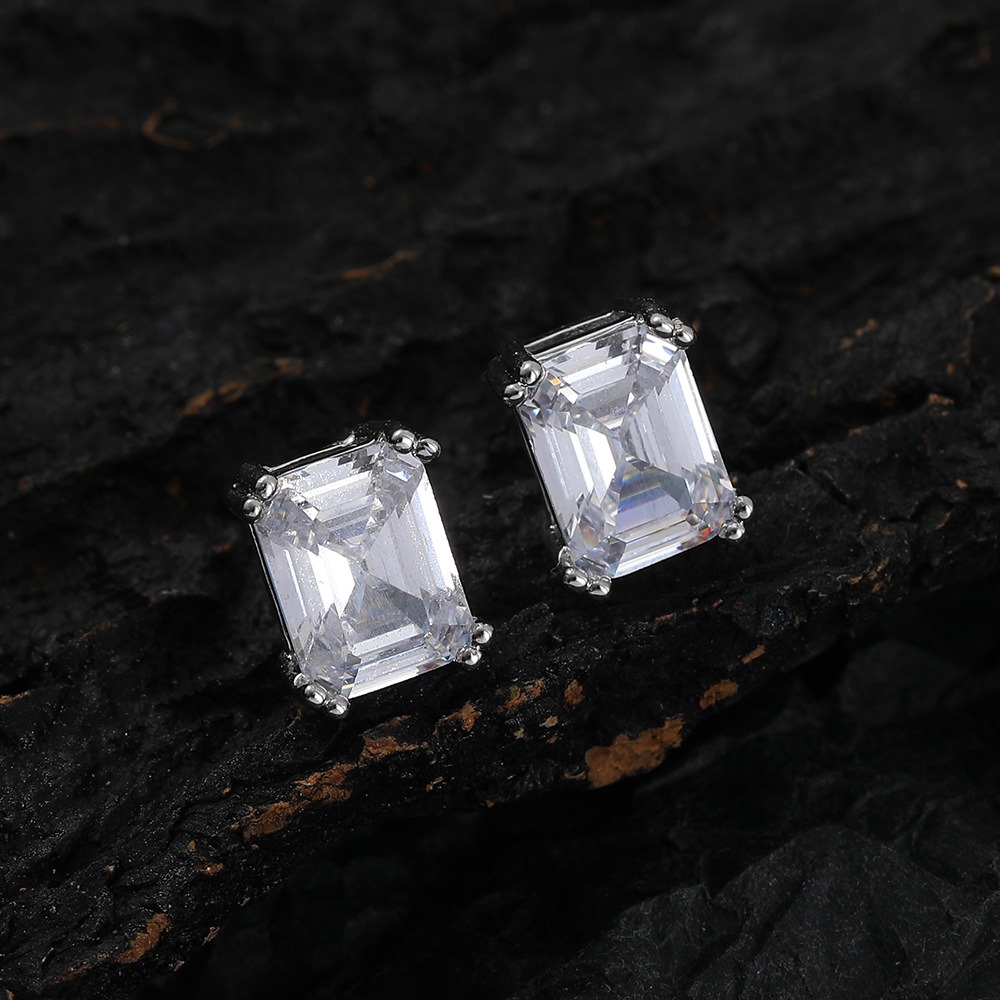 Hip Hop copper inlaid zircon earrings 6*8mm rectangular stud earrings