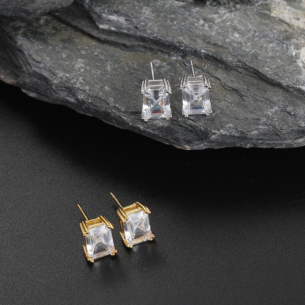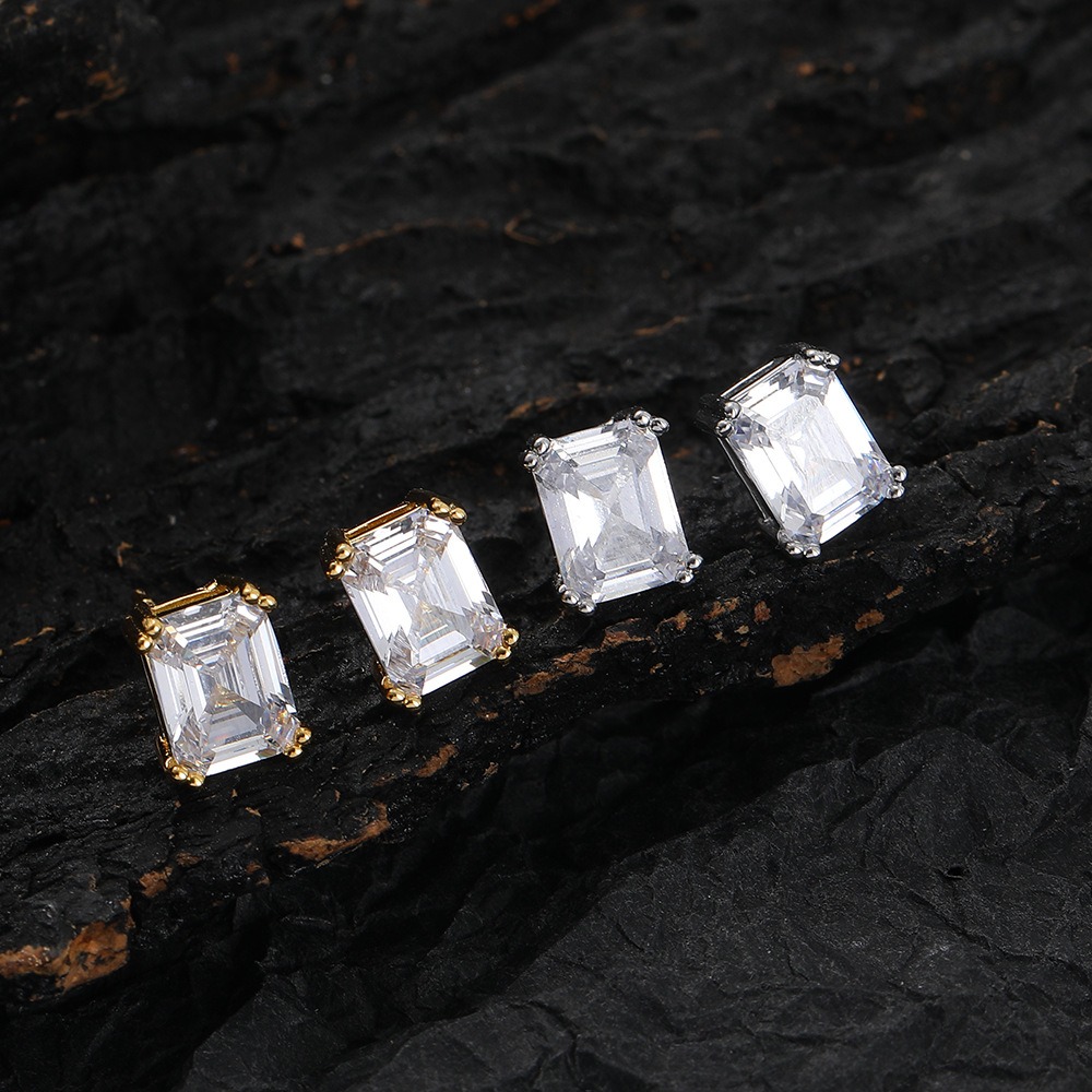 + Free ShippingHip Hop copper inlaid zircon earrings 6*8mm rectangular stud earrings