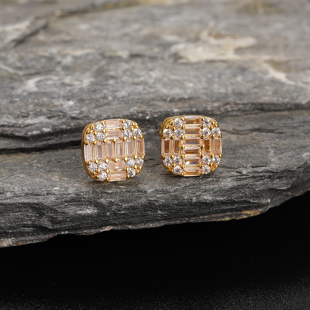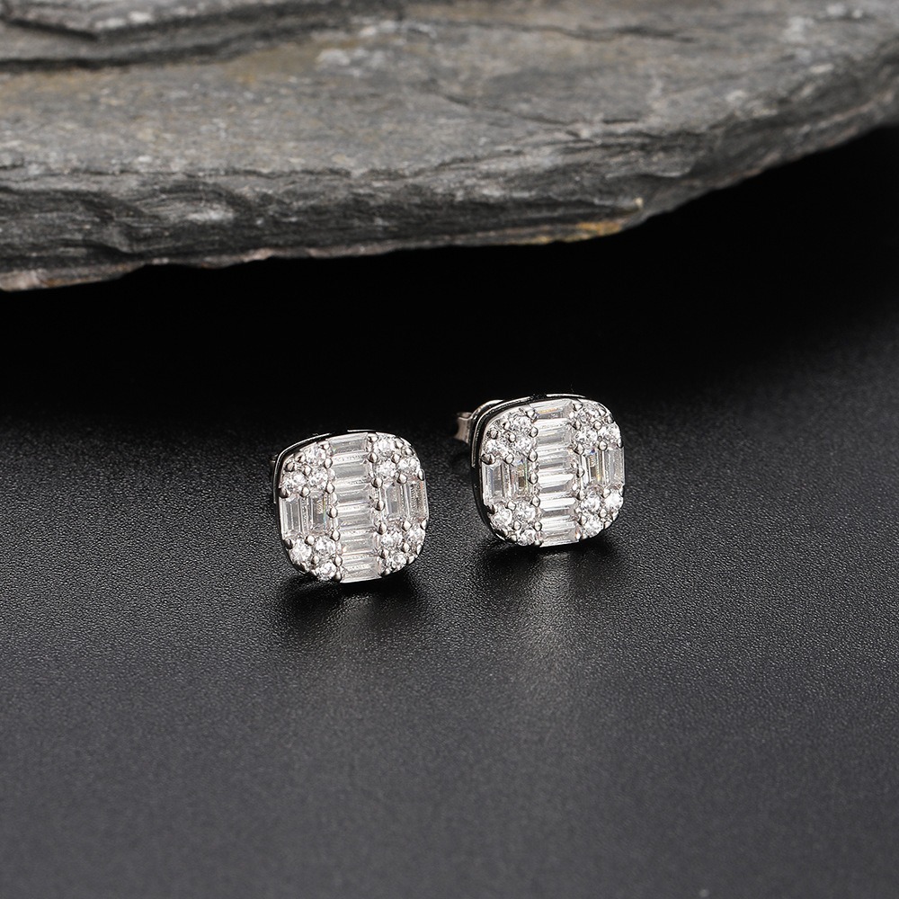 Hip Hop copper inlaid zircon earrings 10*10mm studs
