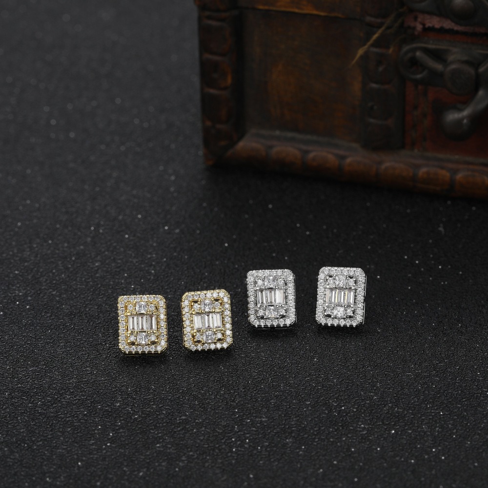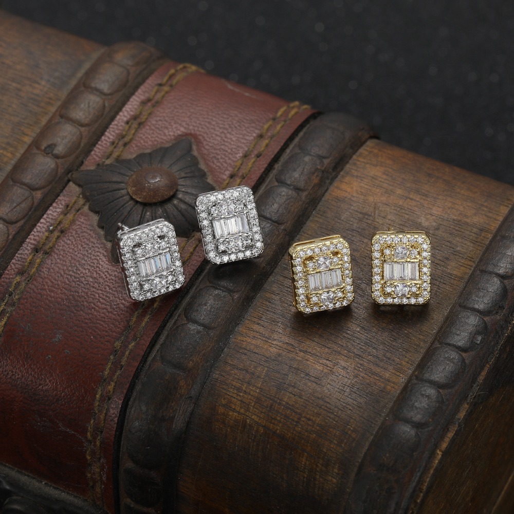 copper inlaid zircon earrings hiphop 11*9mm square studs
