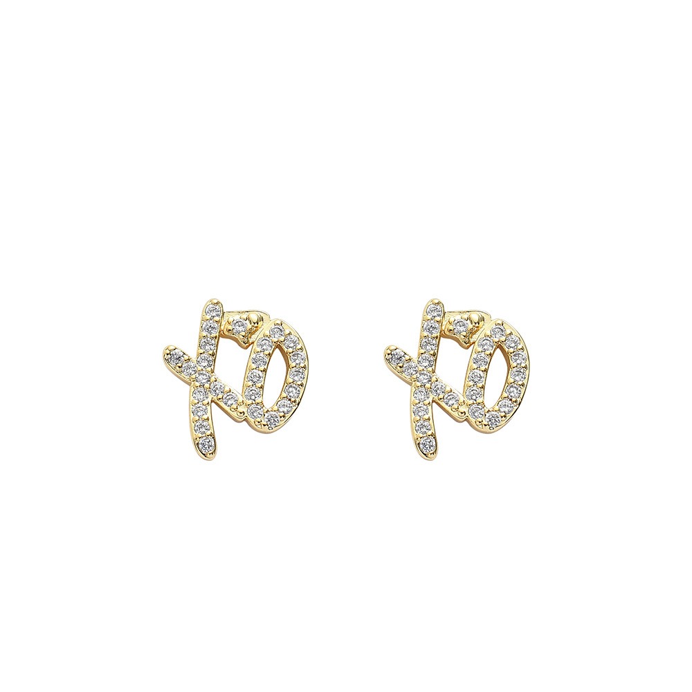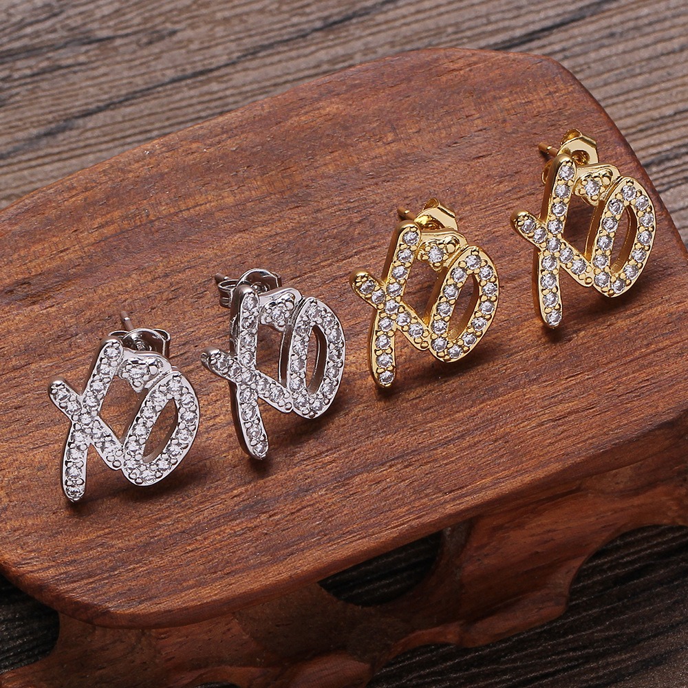 + Free ShippingHip-hop earrings with copper and zircon letters XO studs