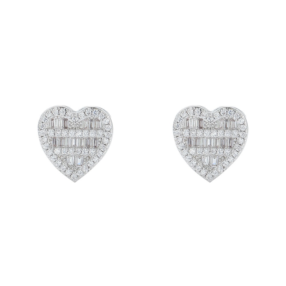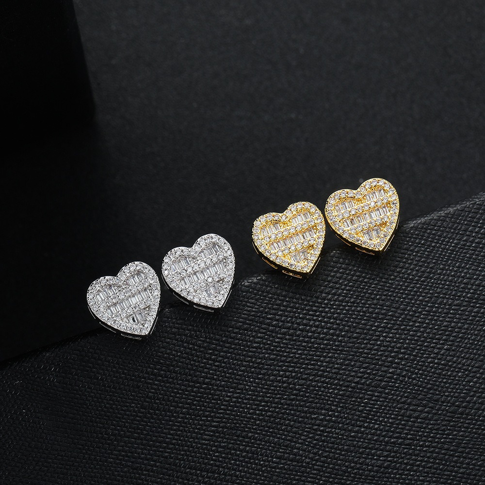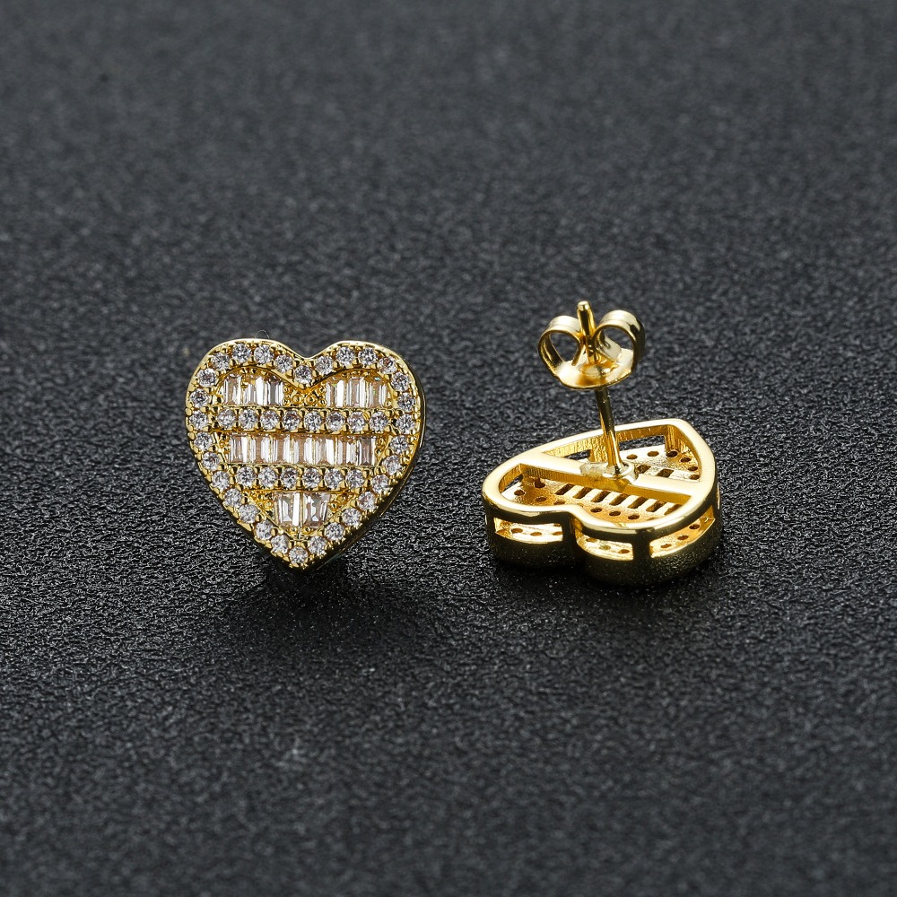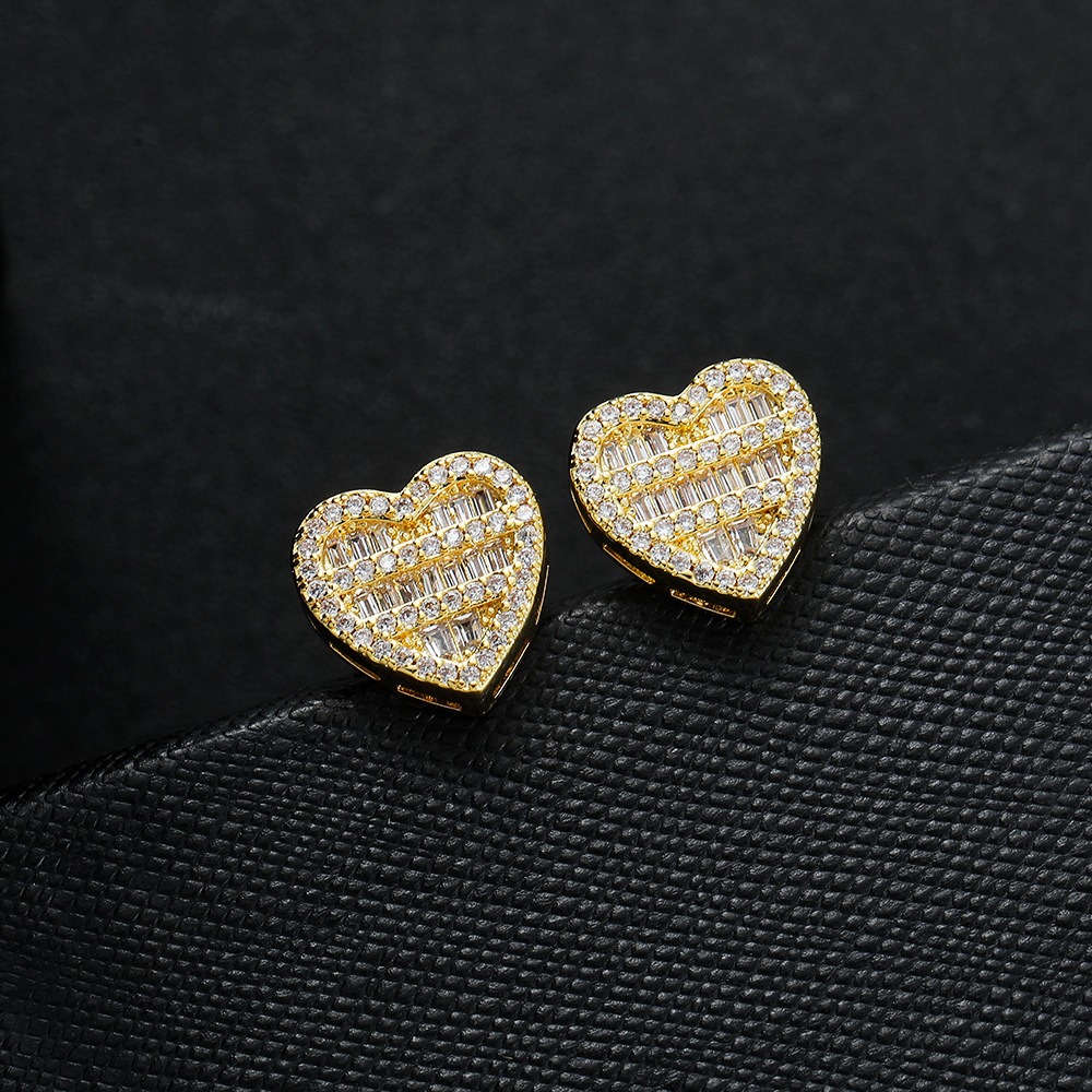 Hip-hop earrings copper inlaid zirconium earrings five-layer heart-shaped earrings
