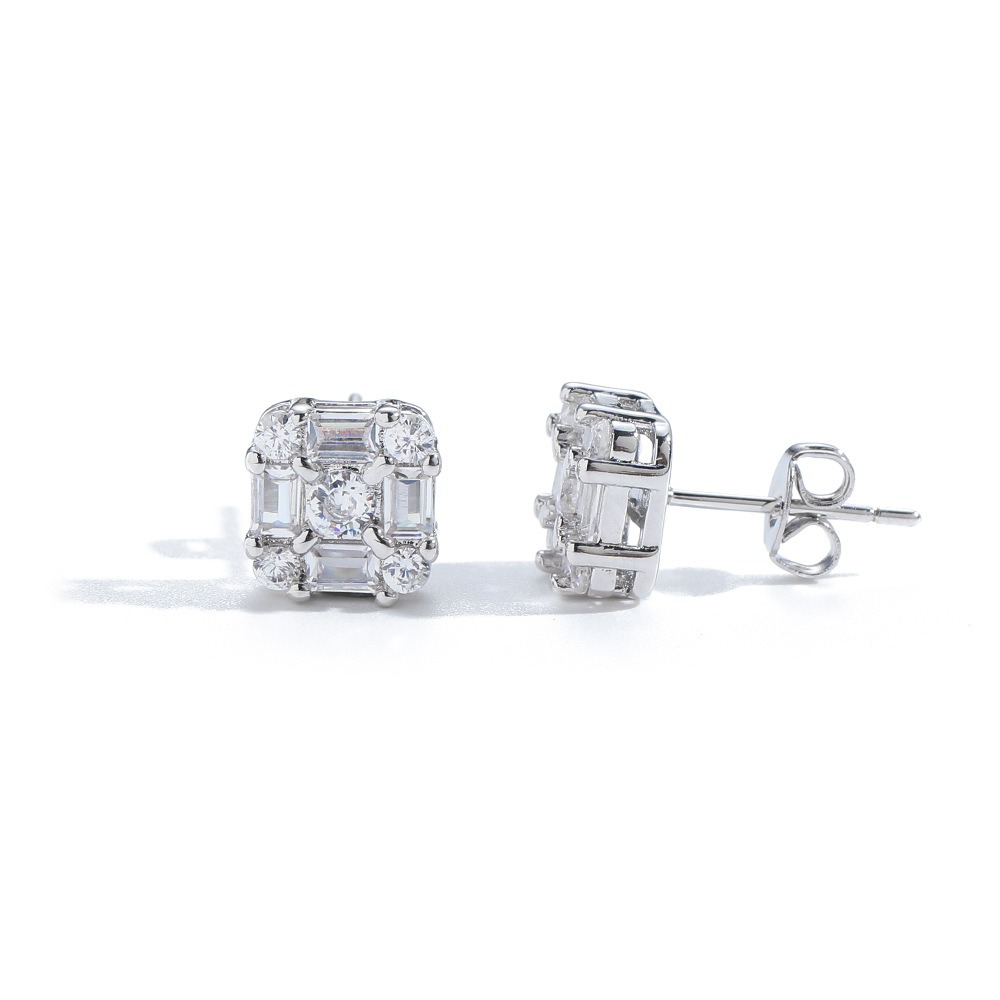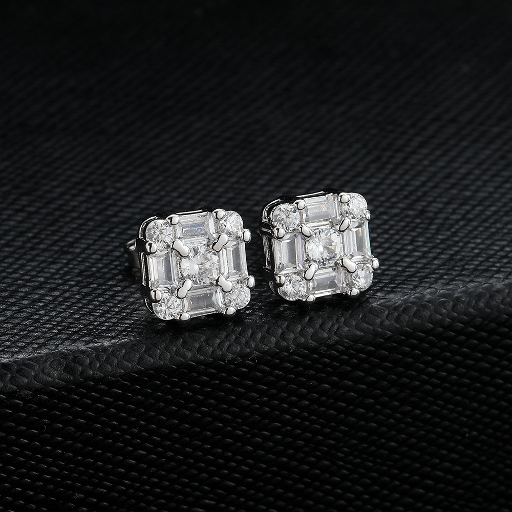 Hip-hop earrings copper inlaid zirconium earrings 8mm square studs