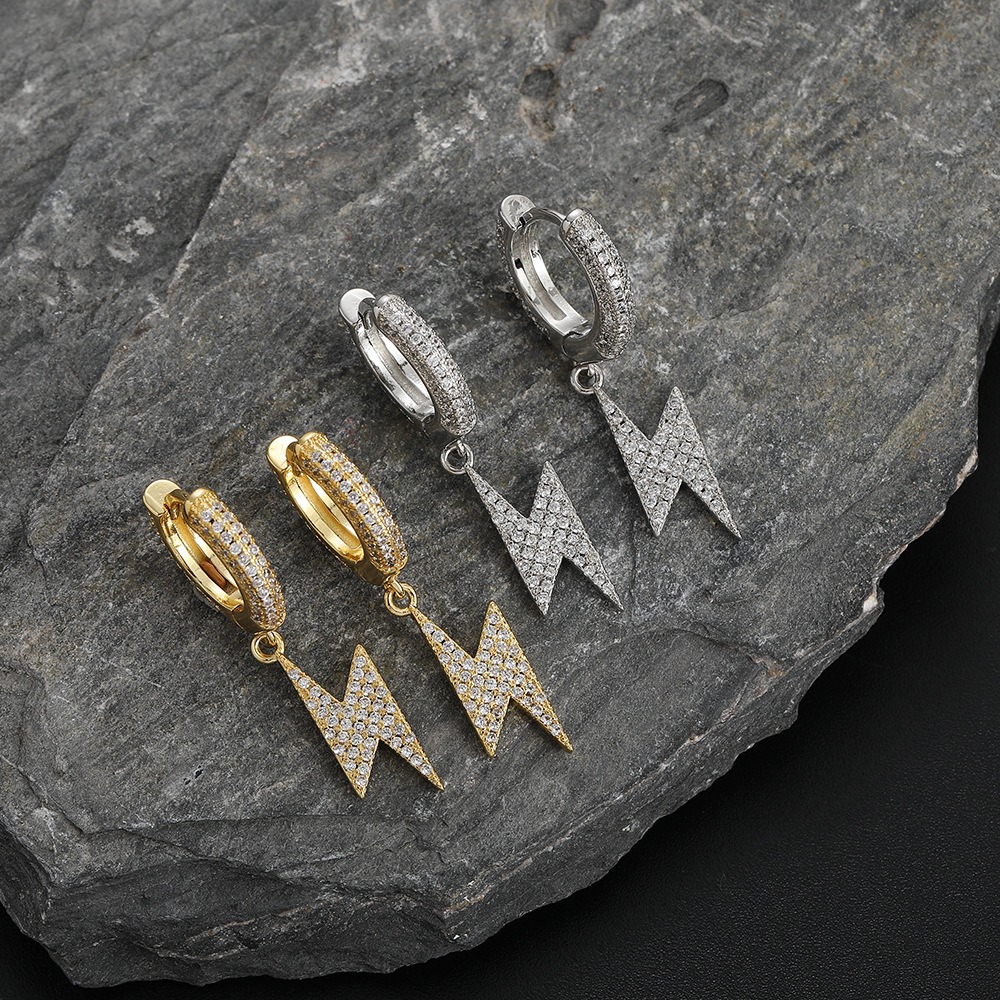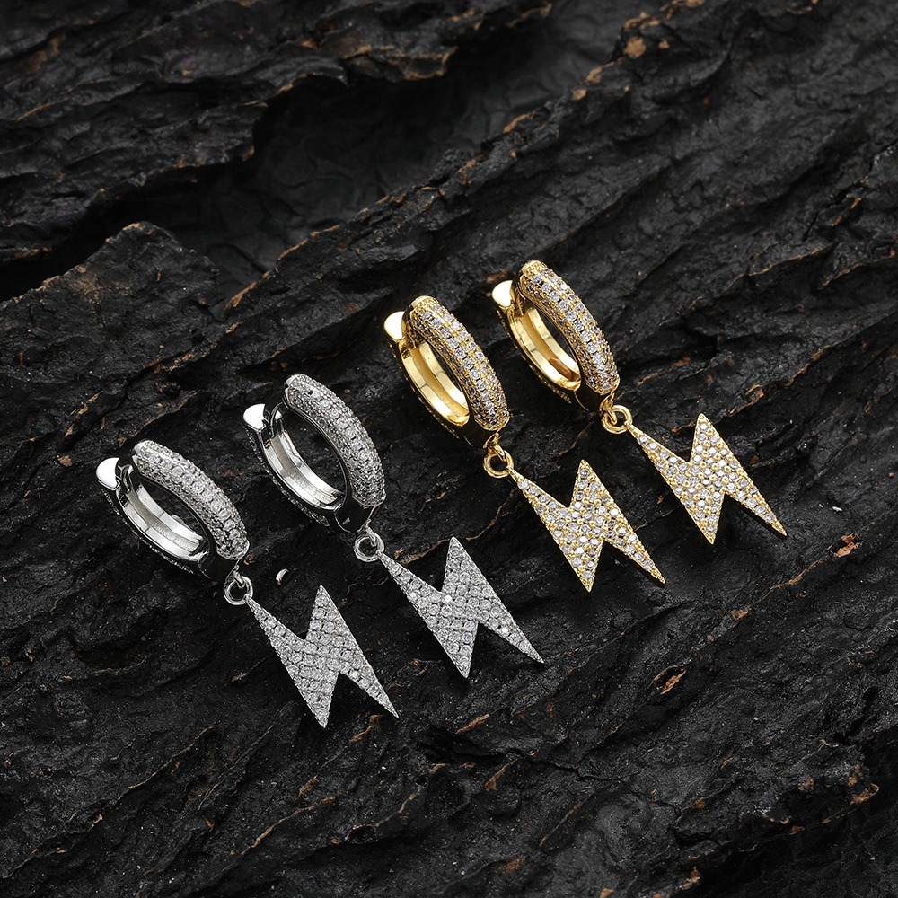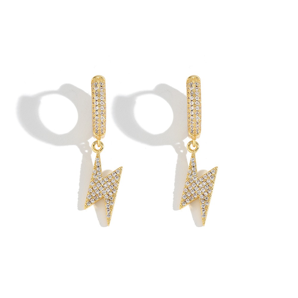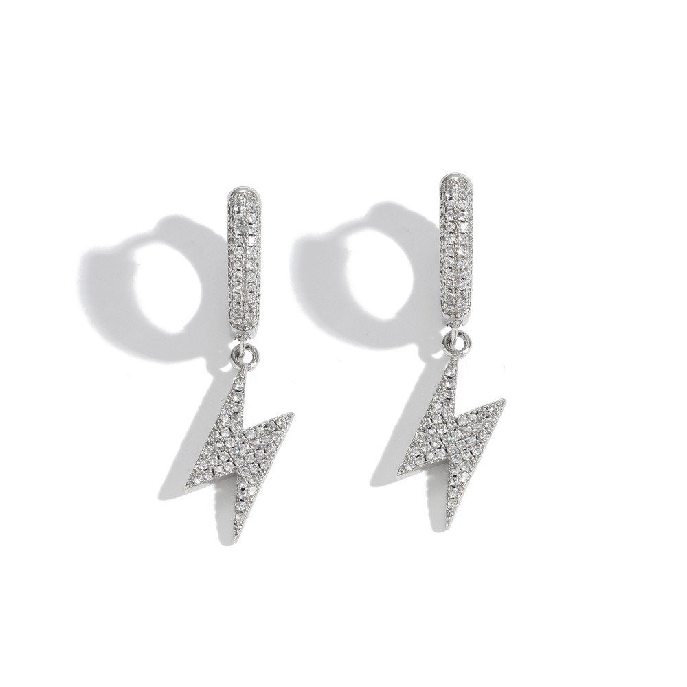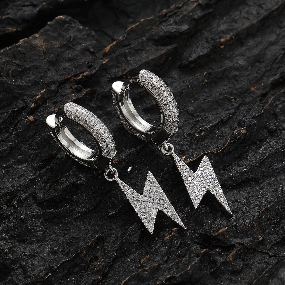 Hip-hop earrings copper inlaid zirconium lightning earrings