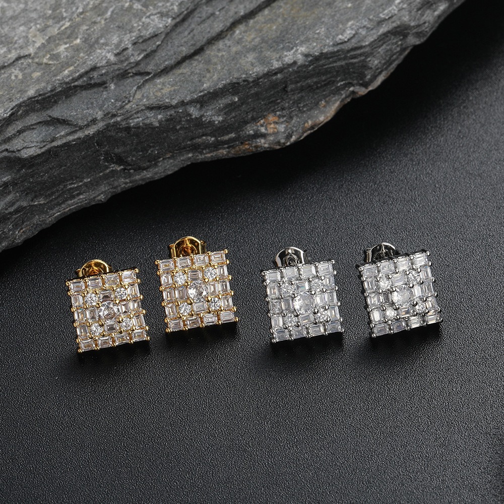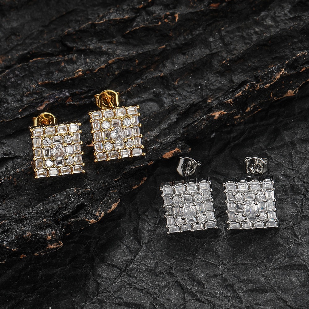 + Free ShippingHip-hop earrings copper inlaid zircon 10mm square earrings