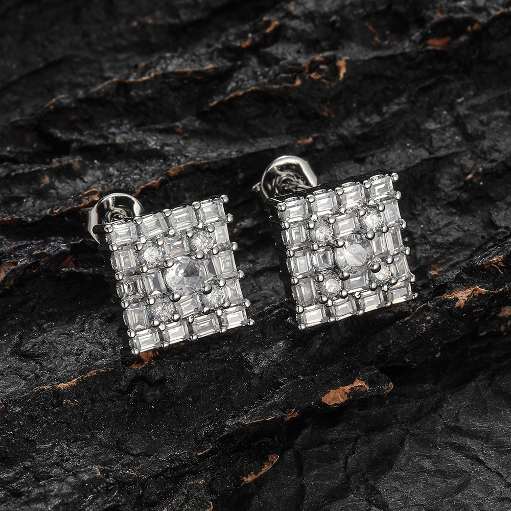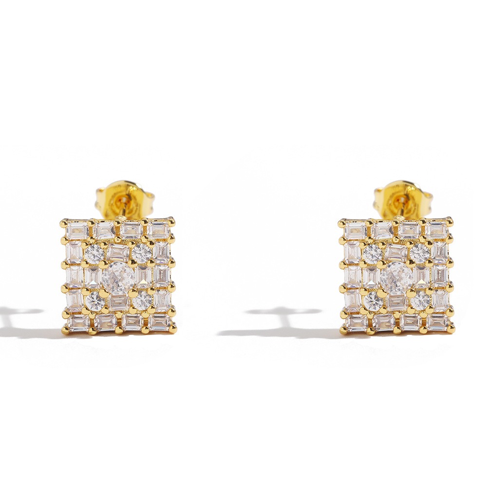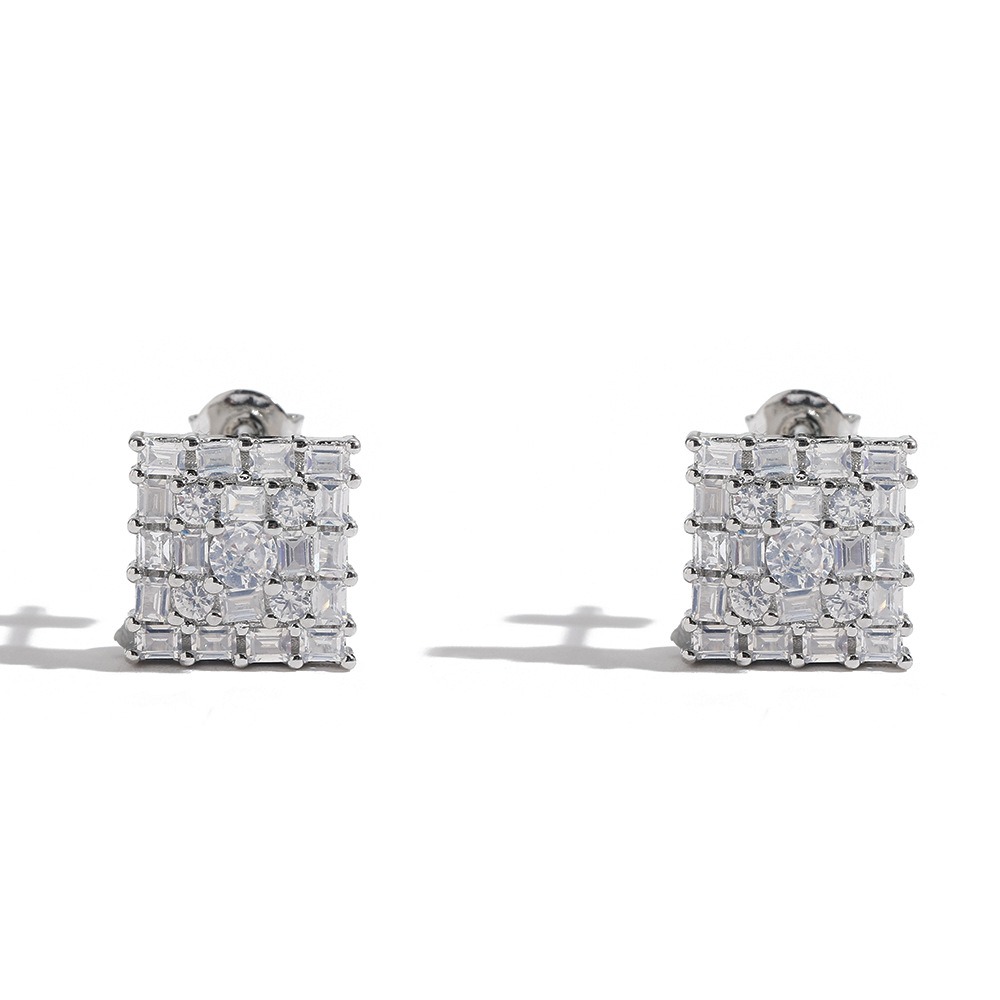Hip-hop earrings copper inlaid zircon 10mm square earrings