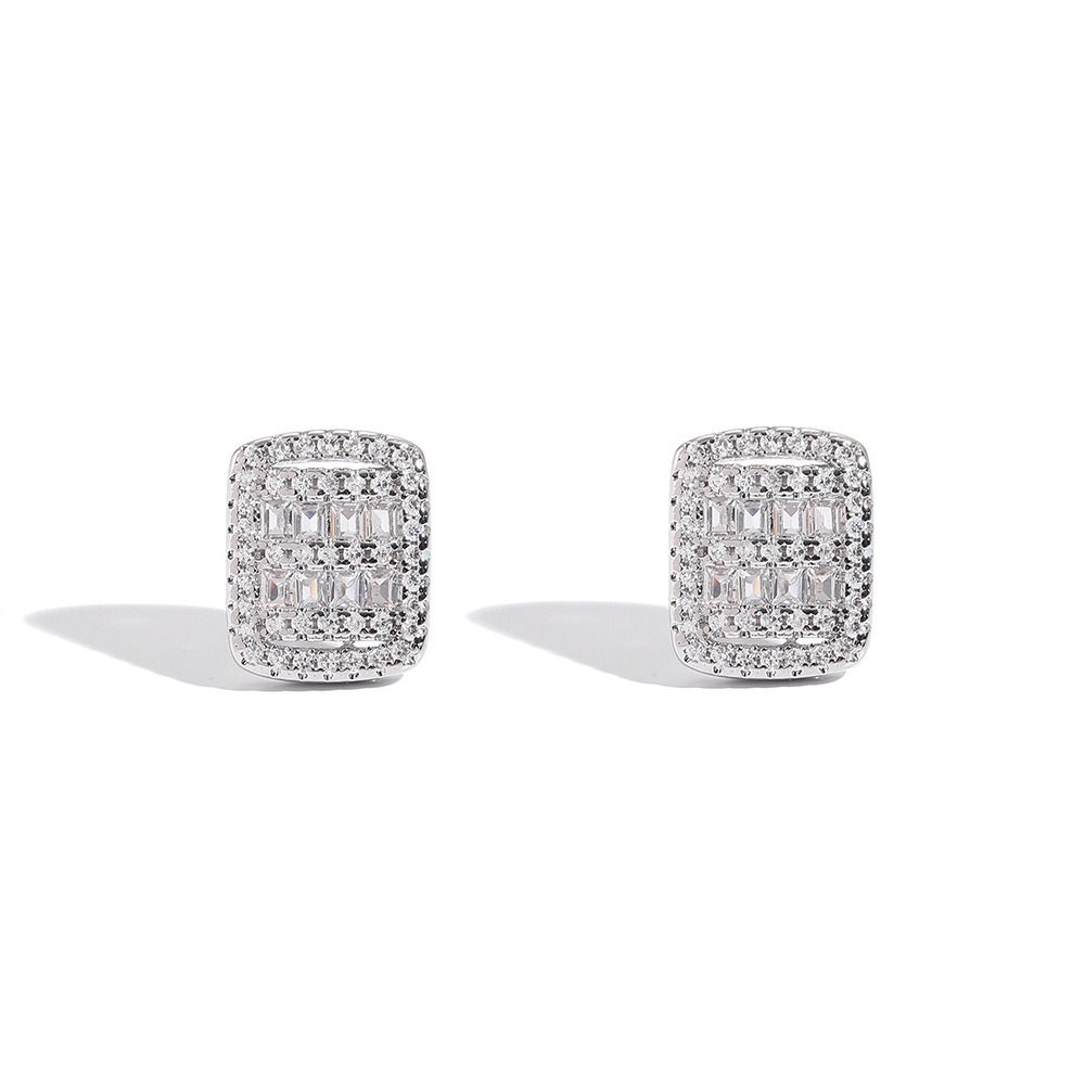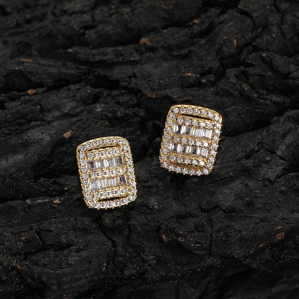 hip-hop earrings 12*10mm rectangular copper inlaid zircon earrings