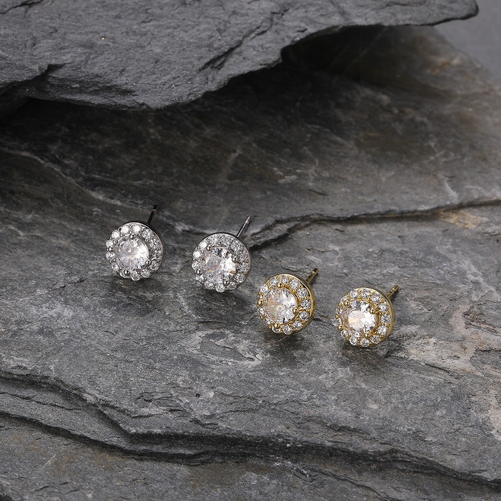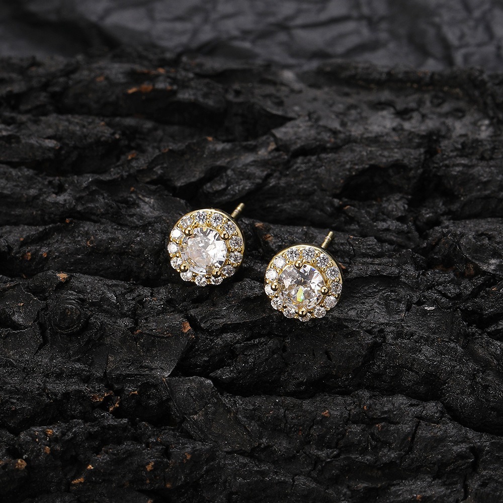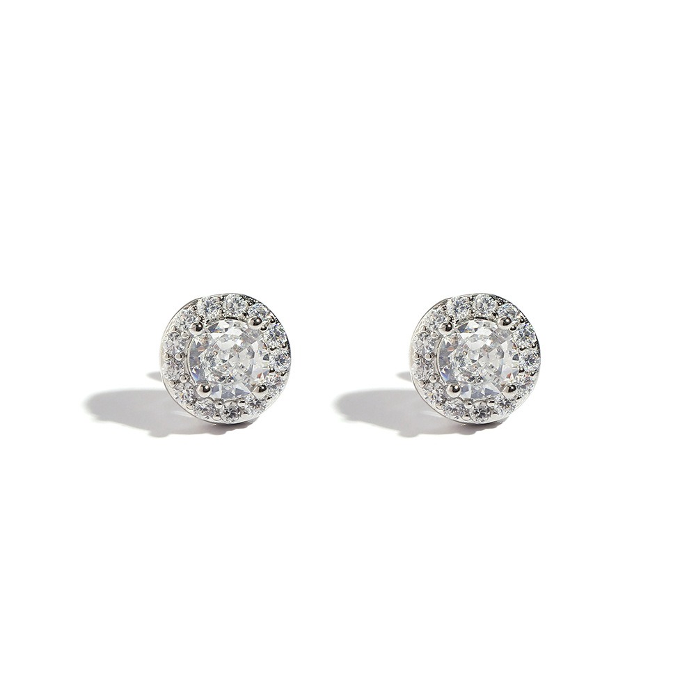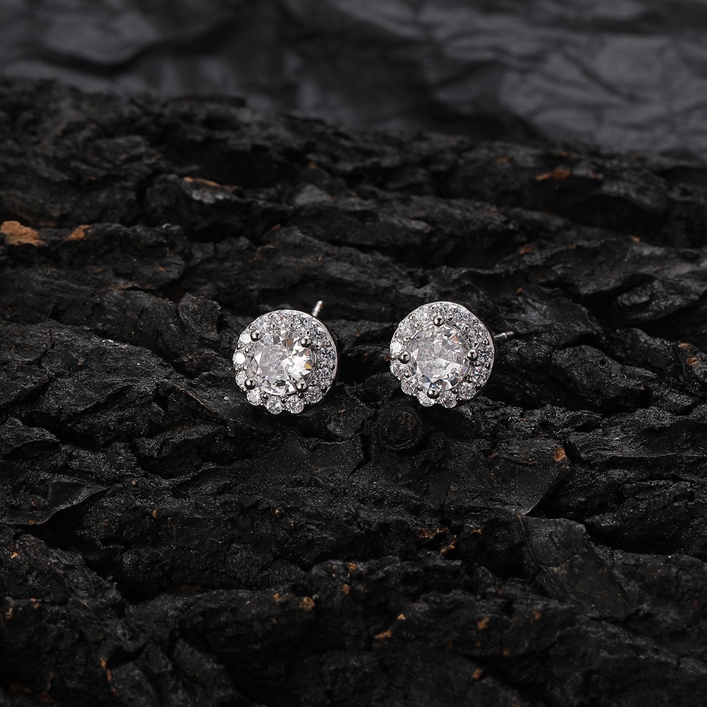 Hip Hop Copper Inlaid Zirconia Earrings Round 8mm Women’s Earrings