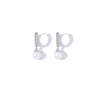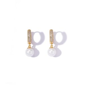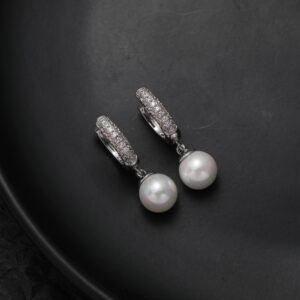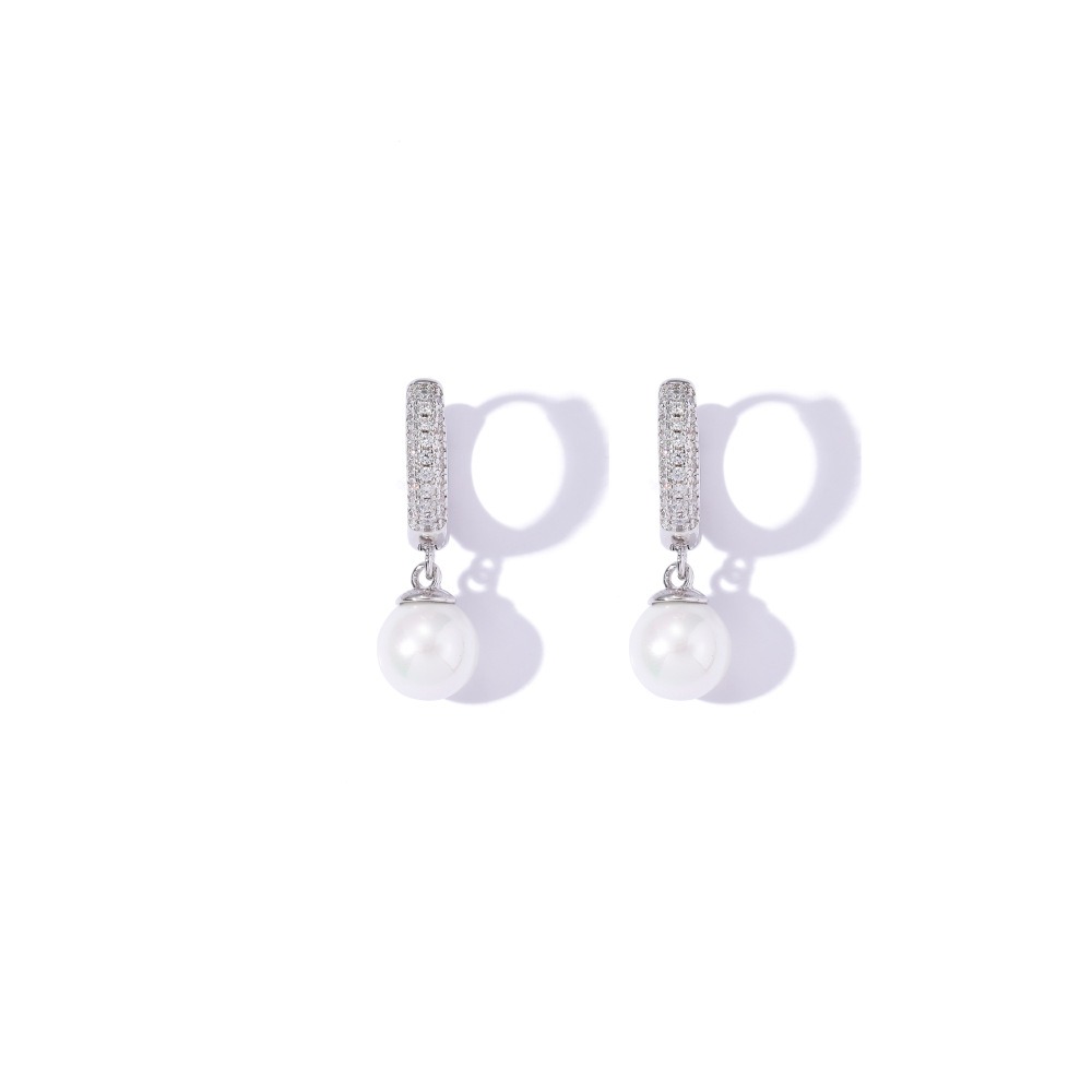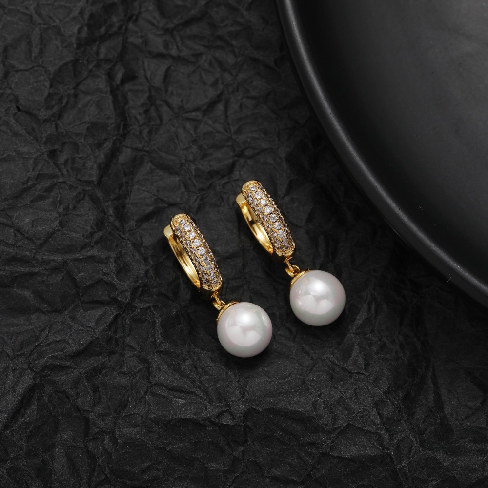 Light luxury round pearl studs Hip Hop copper inlaid zircon earrings