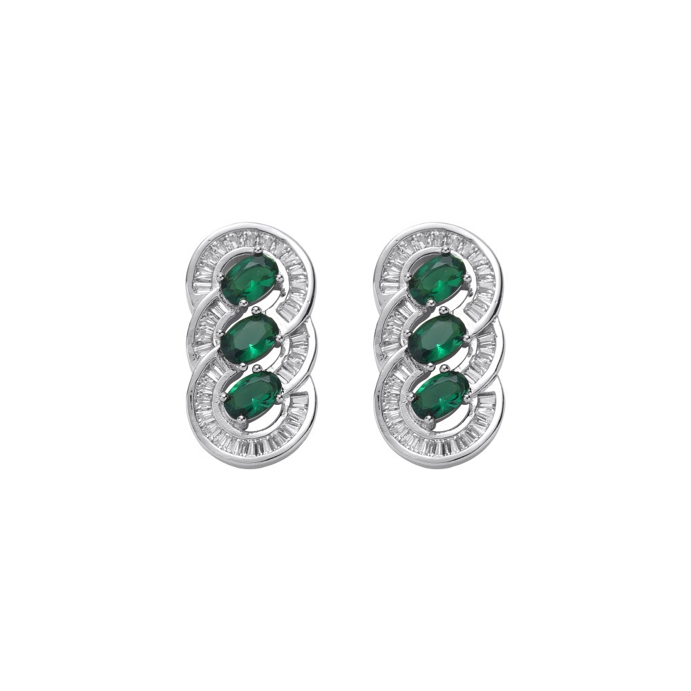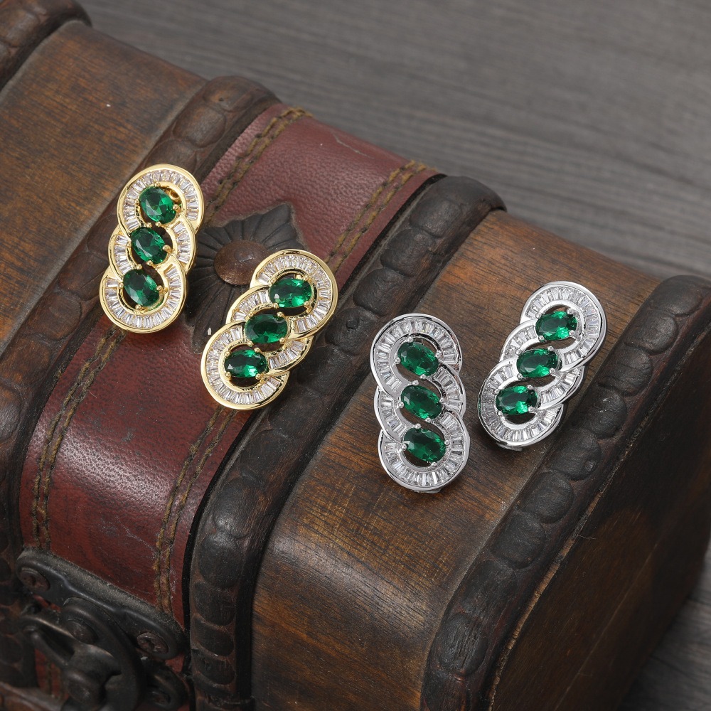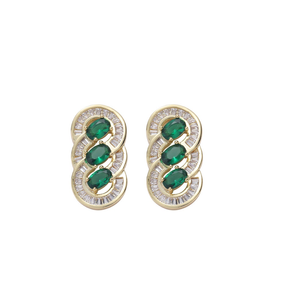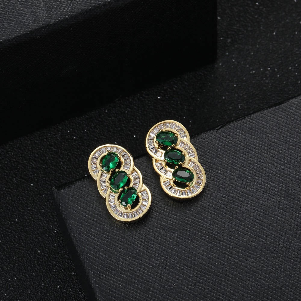 three-layer gold coin green zirconium earrings Fashionable exaggerated hip-hop earrings