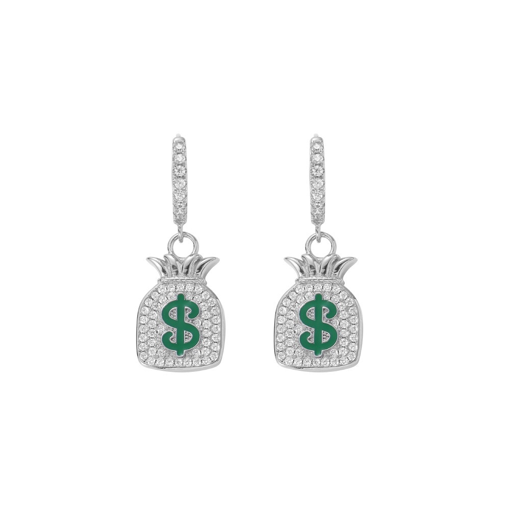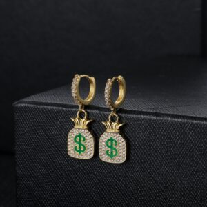 Dollar Sign Money Bag Earrings Hip Hop Full Zirconium Earrings Rock Men’s Earrings