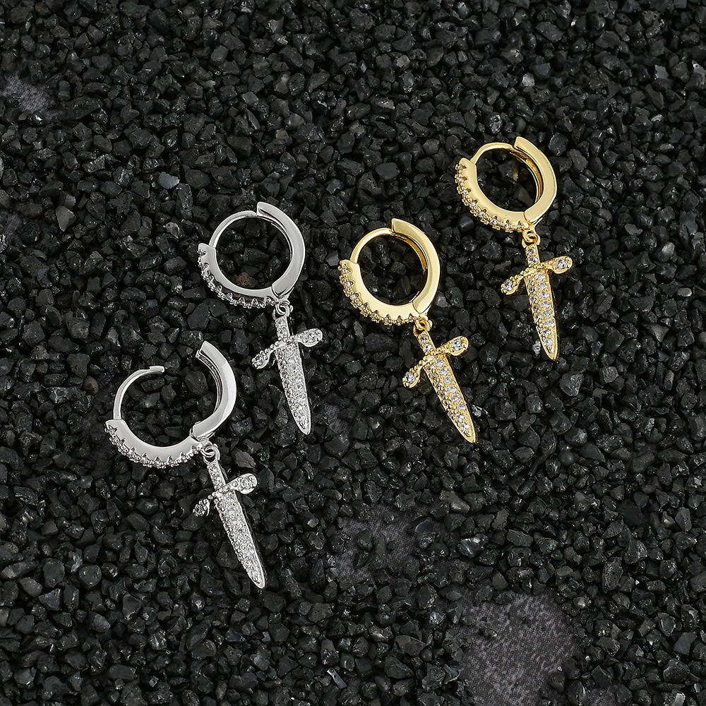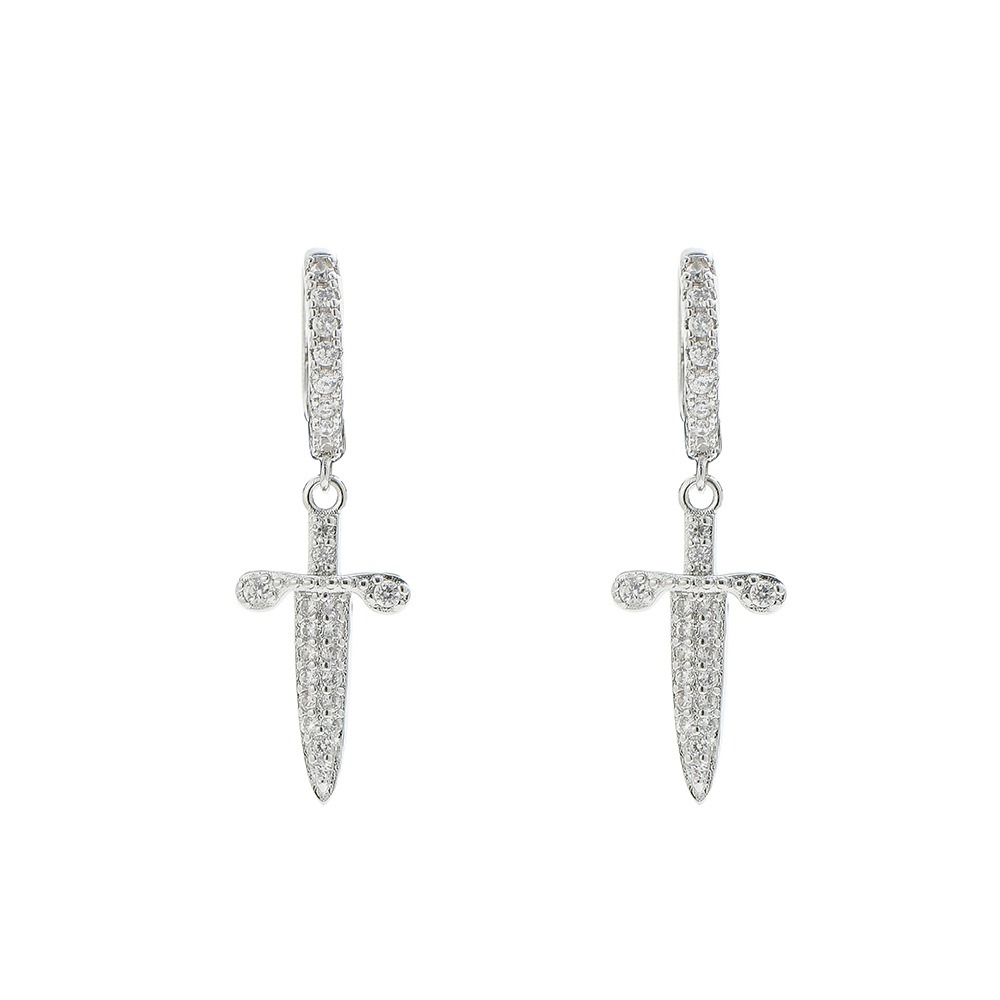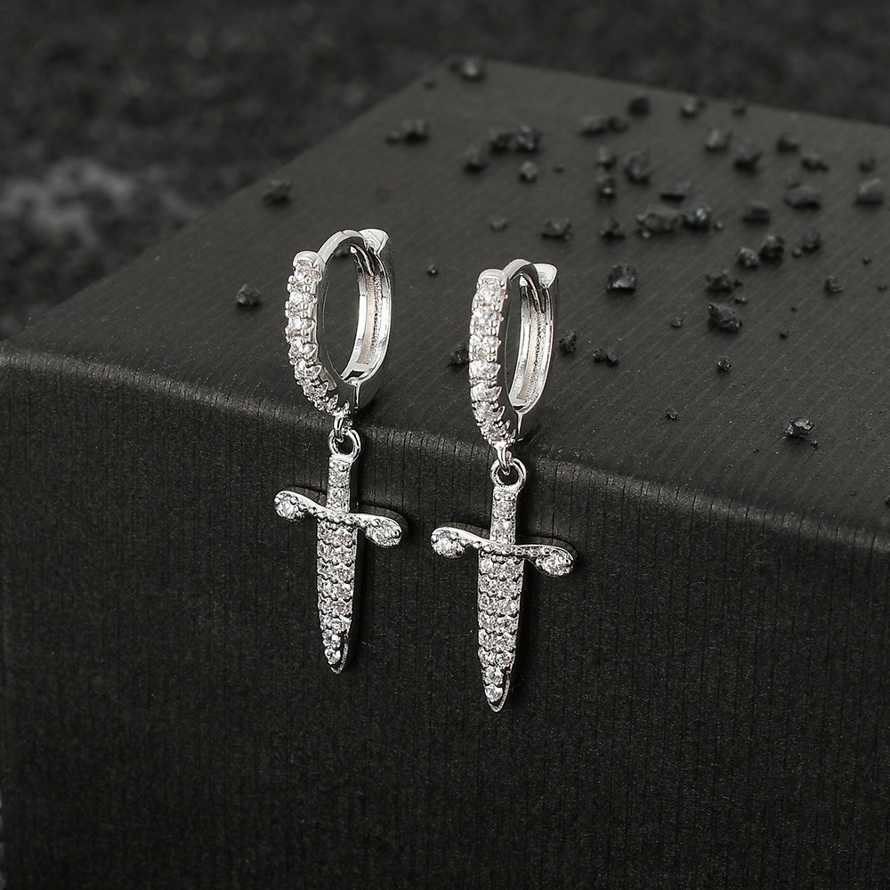hip-hop sword-shaped earrings cross zircon personality punk earrings
