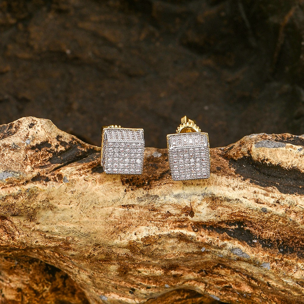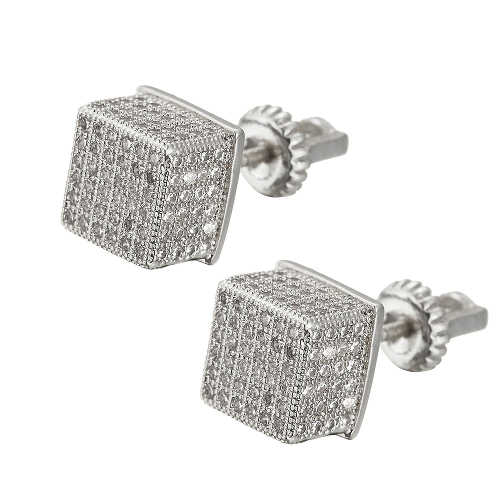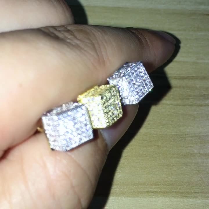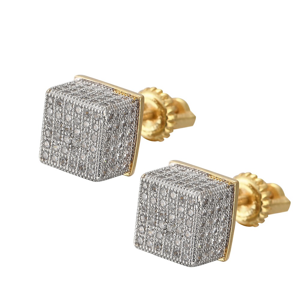 Hip-hop earrings Square full zirconium earrings Retro couple earrings