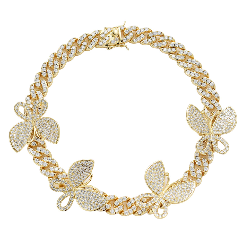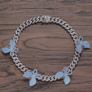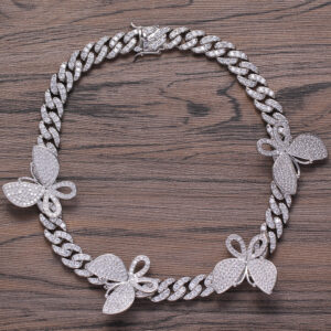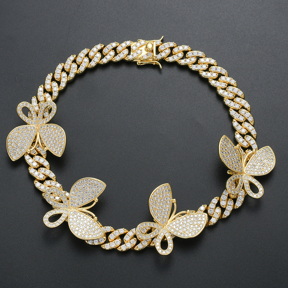 Hip Hop Cuban Chain 12mm Copper Inlaid Square Zircon Butterfly Necklace