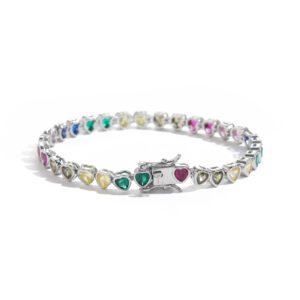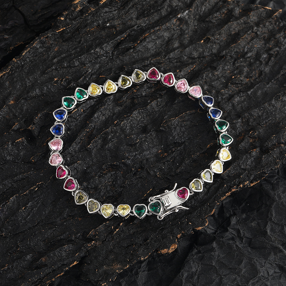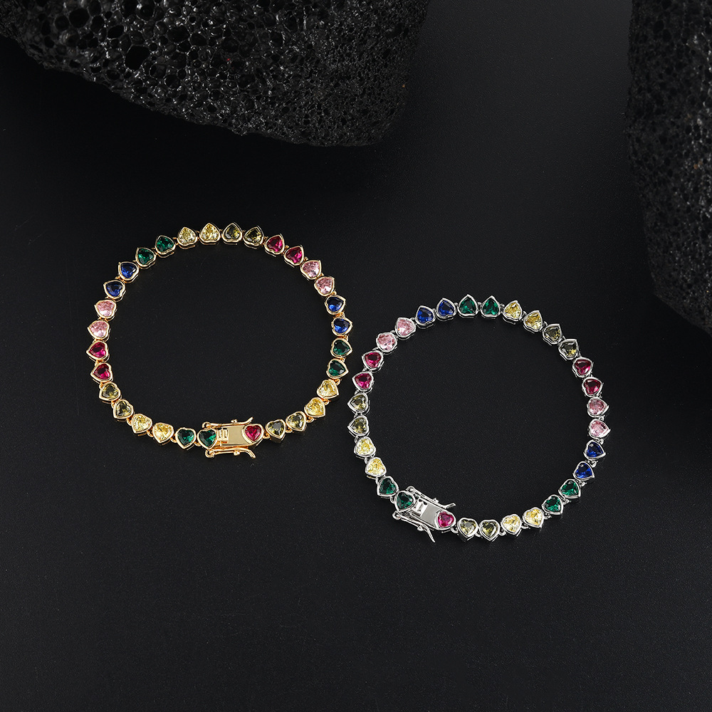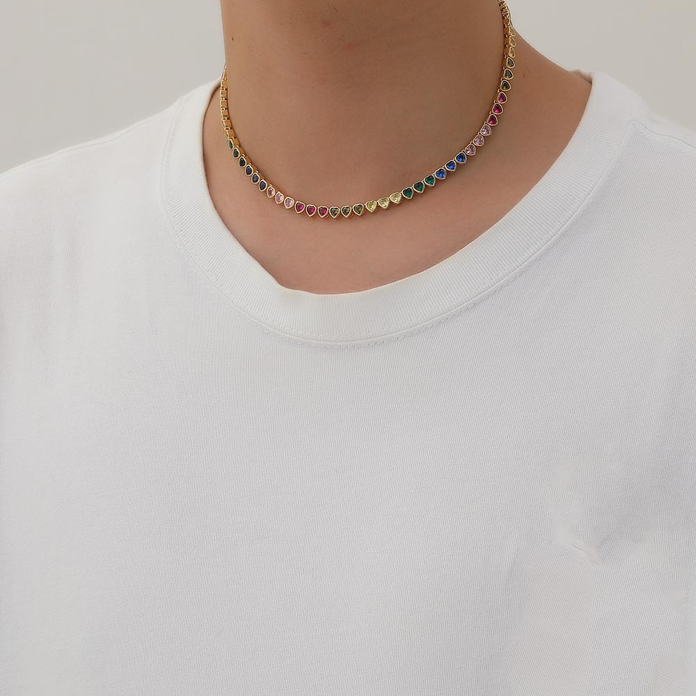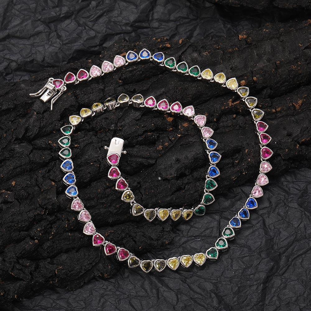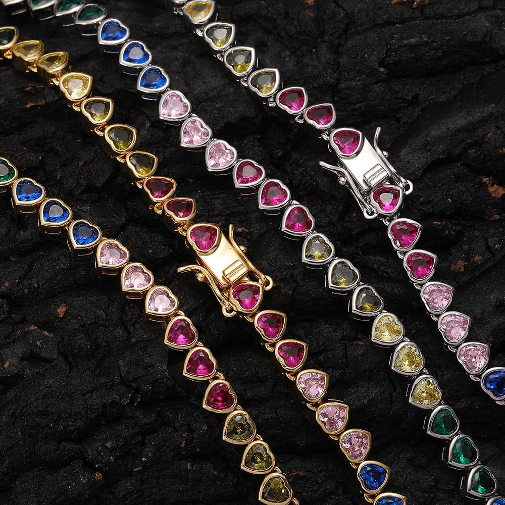 Hip Hop copper inlaid zircon tennis chain colorful heart necklace bracelet