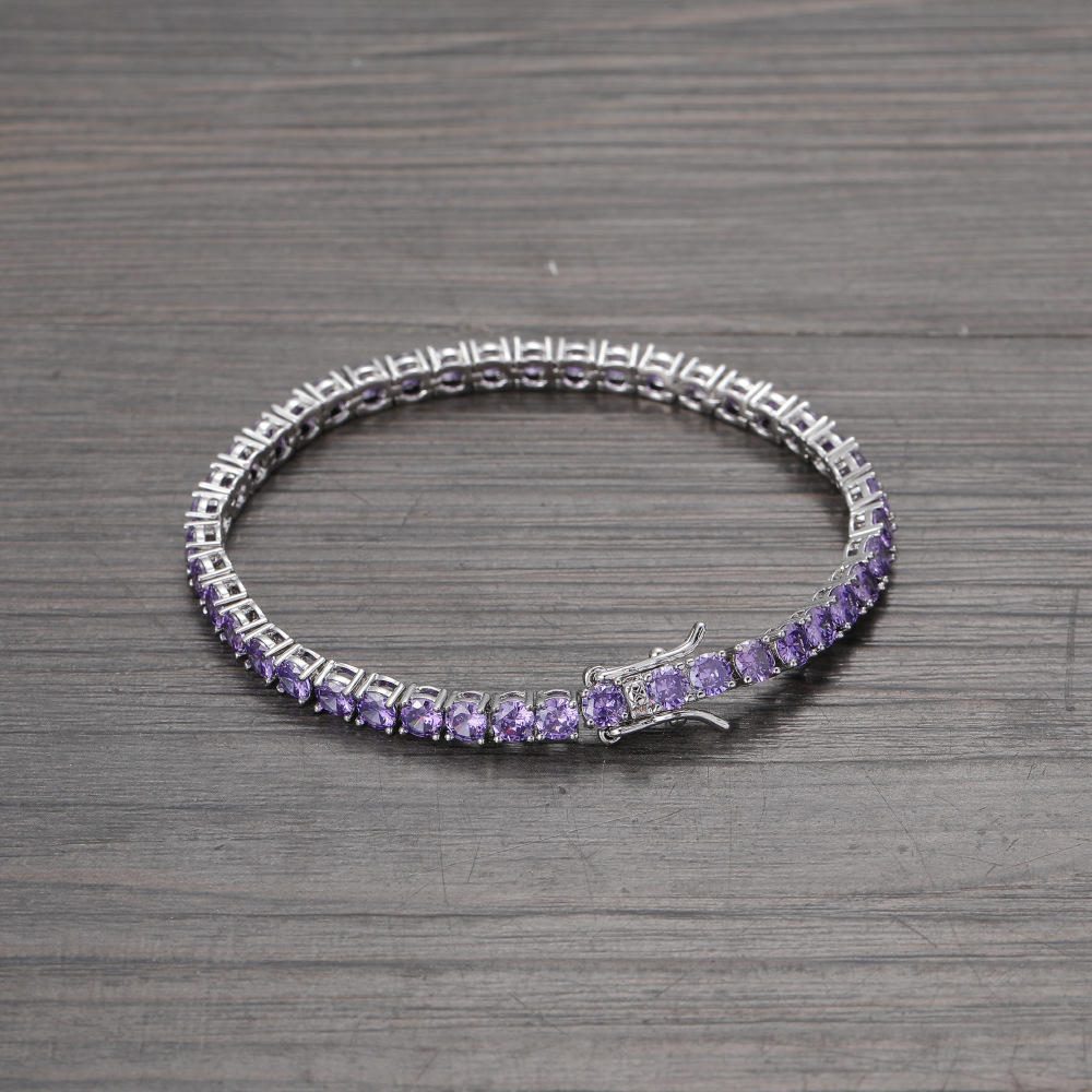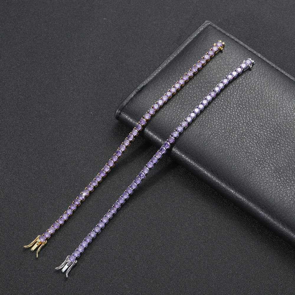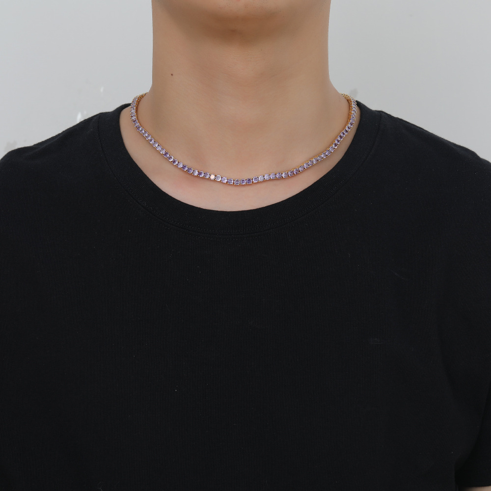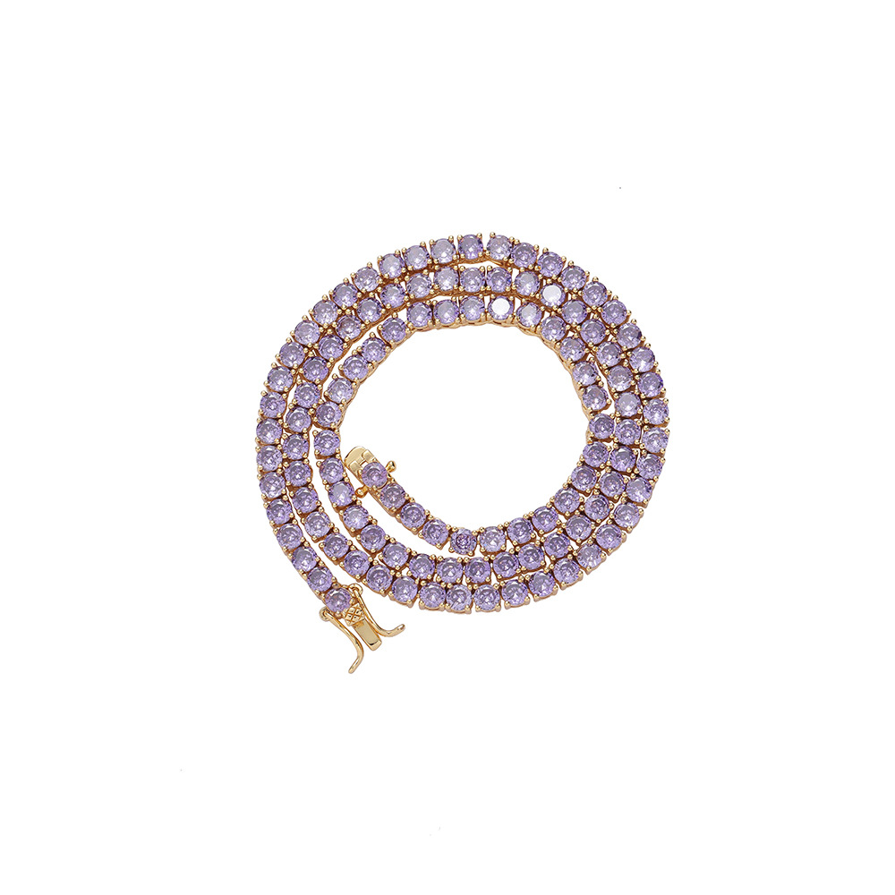 Hip Hop Copper Inlaid Zircon Purple 4mm Single Row Tennis Chain Necklace Bracelet