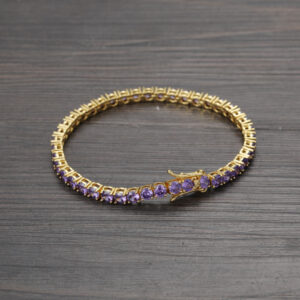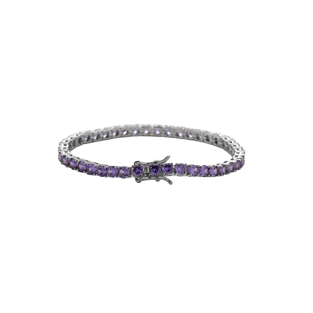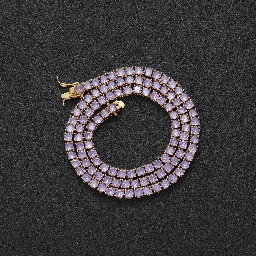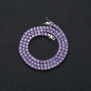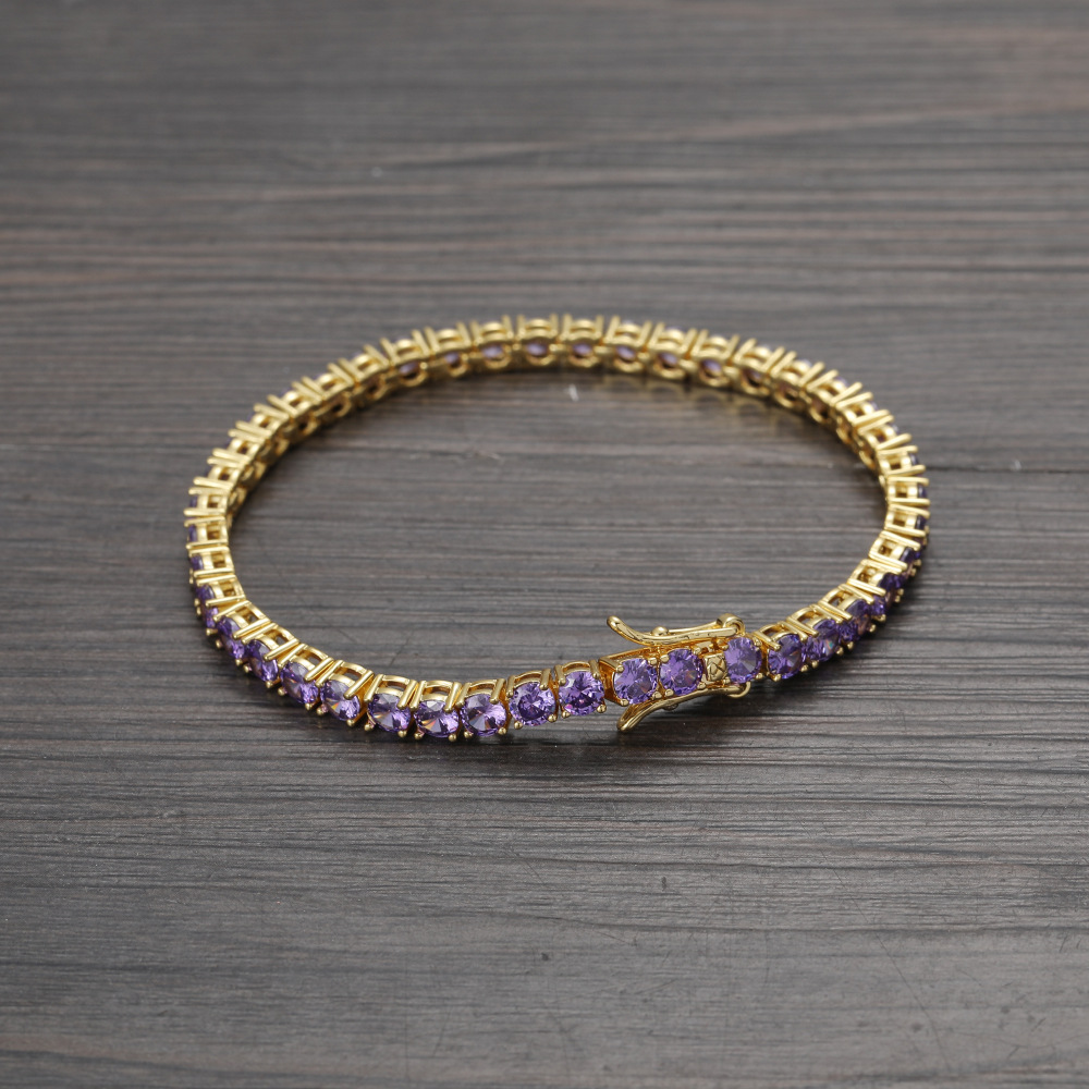 Hip Hop Copper Inlaid Zircon Purple 4mm Single Row Tennis Chain Necklace Bracelet
