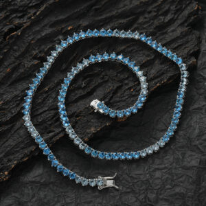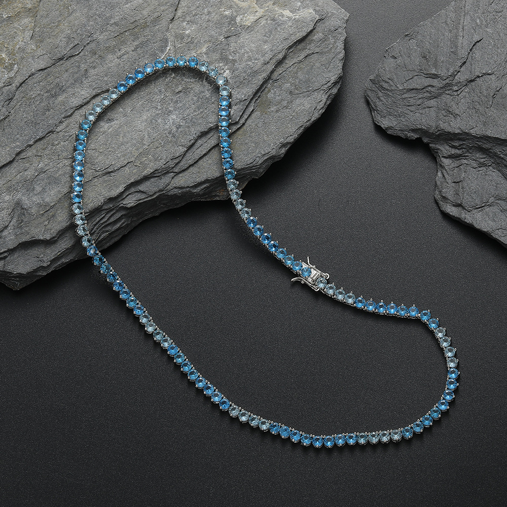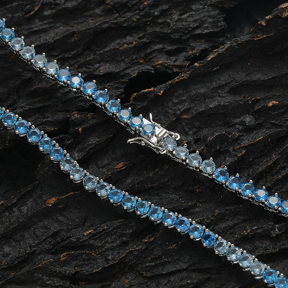 Hip Hop Copper Inlaid Zircon Gradient Blue 4mm Three Claw Single Row Tennis Chain Necklace