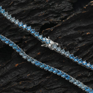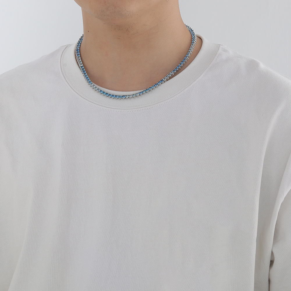 + Free ShippingHip Hop Copper Inlaid Zircon Gradient Blue 4mm Three Claw Single Row Tennis Chain Necklace