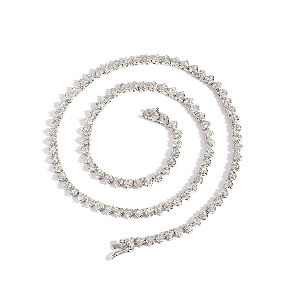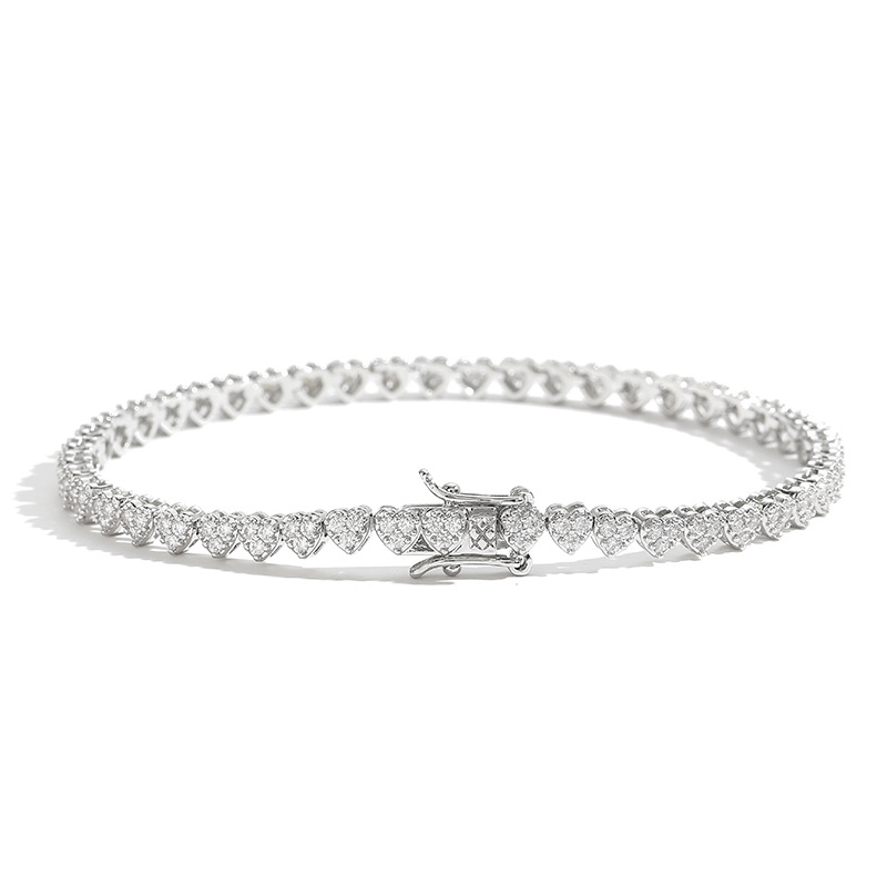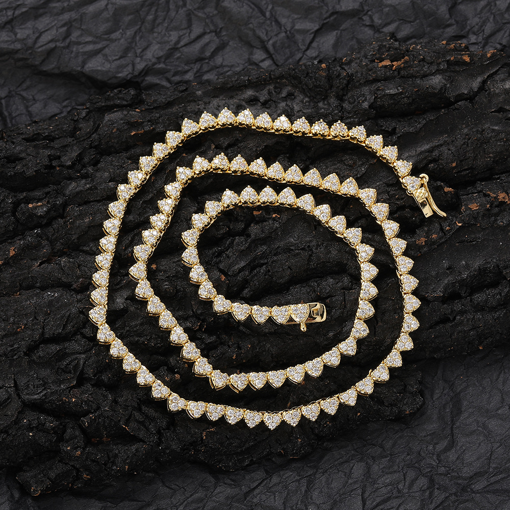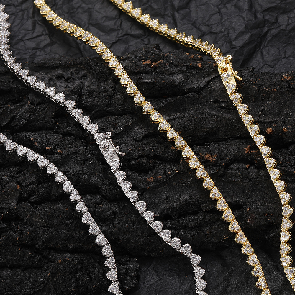 Hip Hop Copper Inlaid Zircon Heart 4mm Single Row Tennis Chain Necklace Bracelet