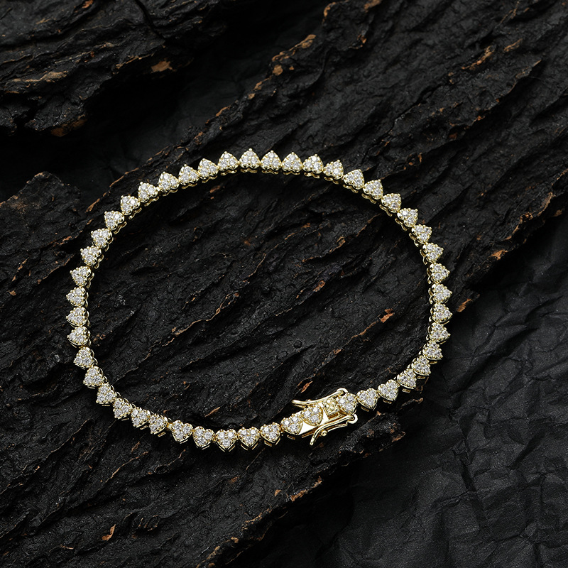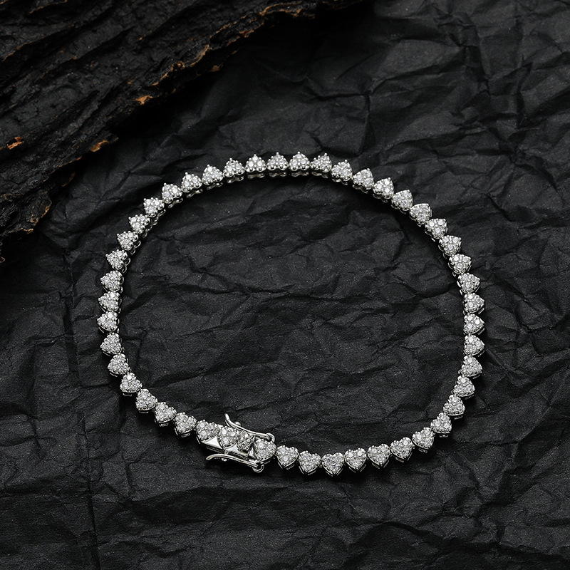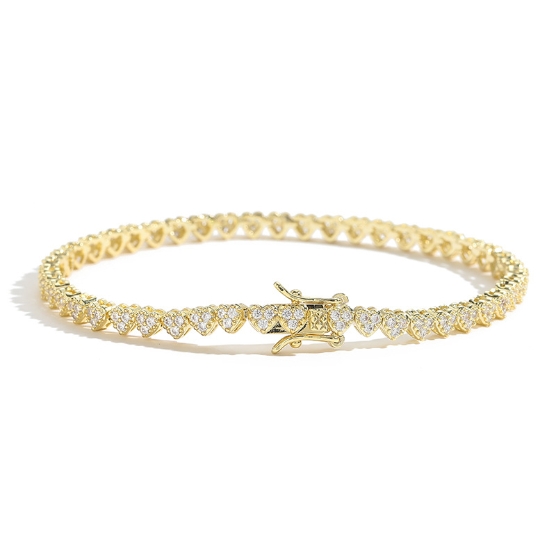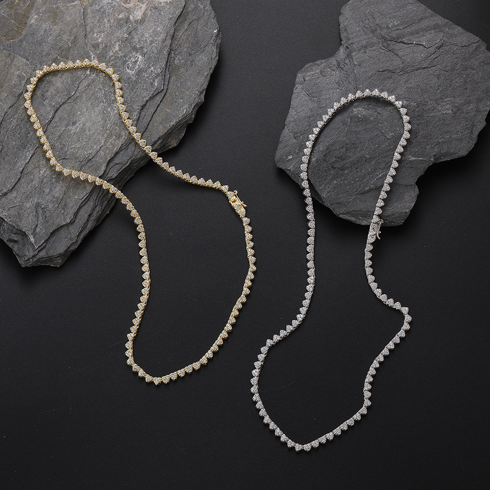 Hip Hop Copper Inlaid Zircon Heart 4mm Single Row Tennis Chain Necklace Bracelet