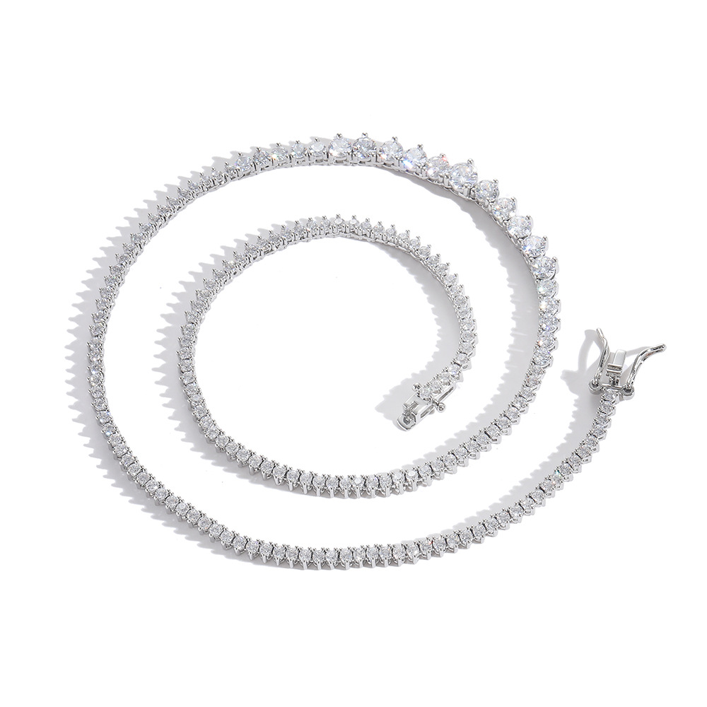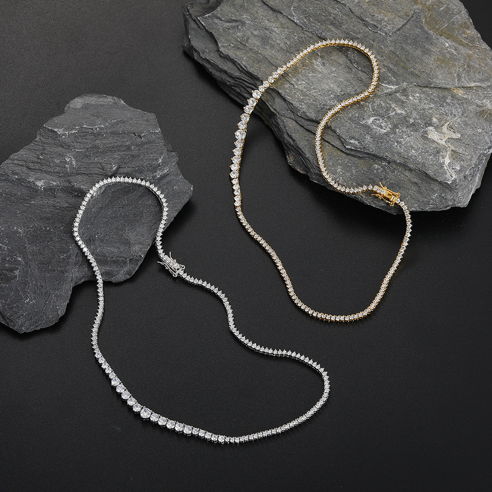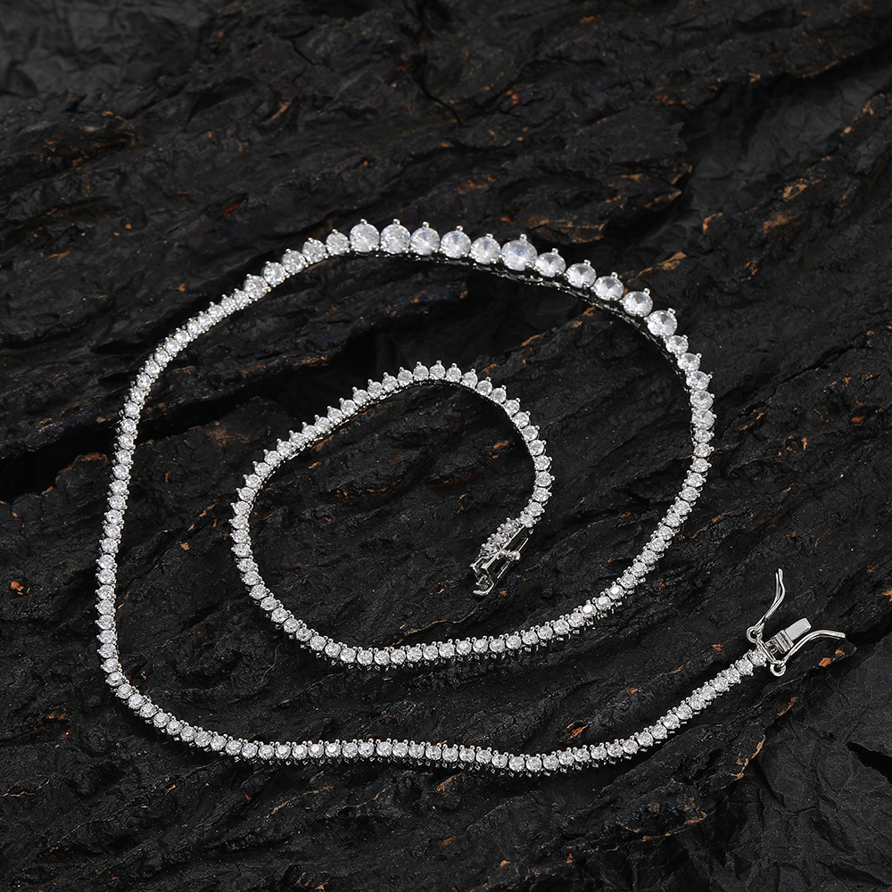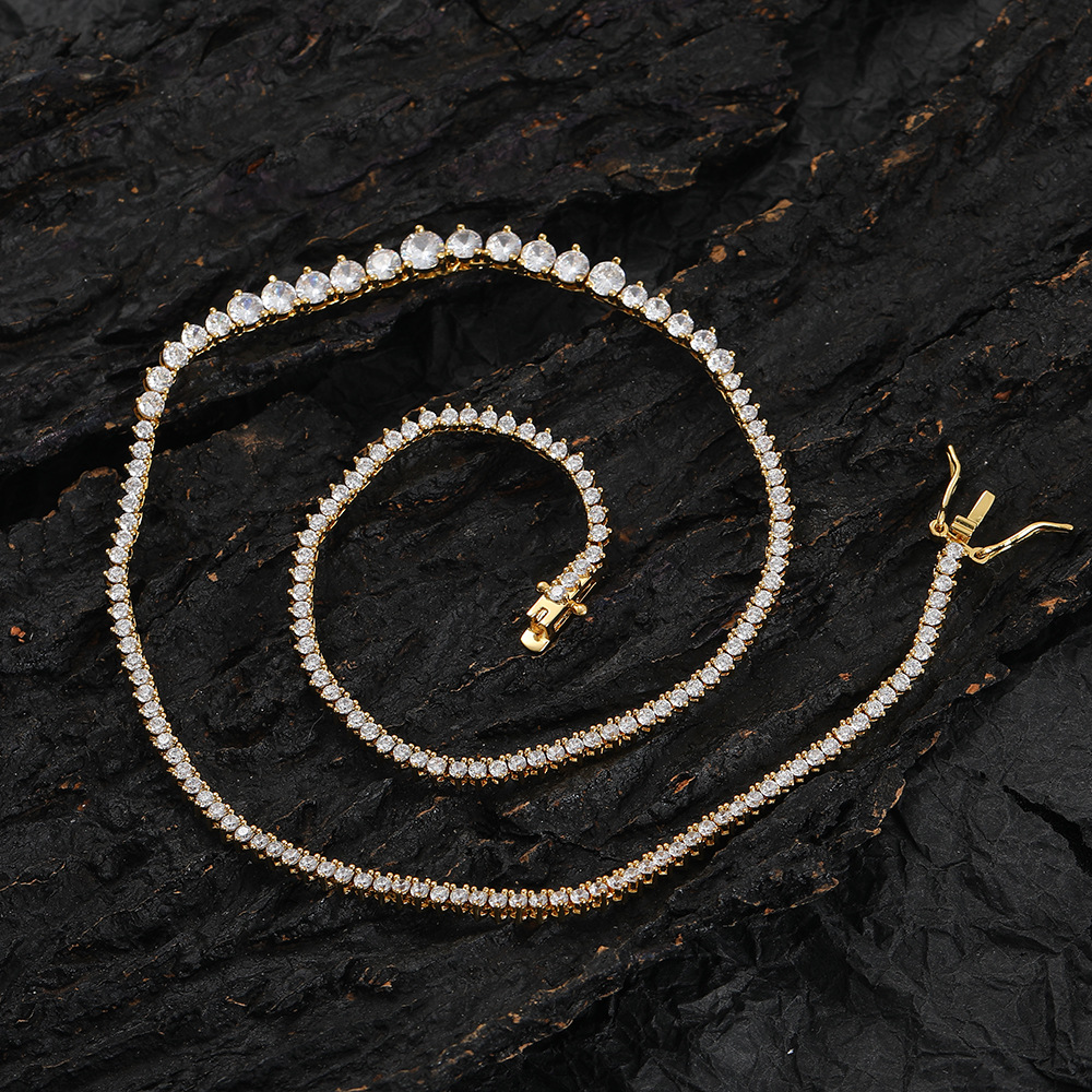 Hip Hop copper inlaid zircon gradient size single row tennis chain necklace