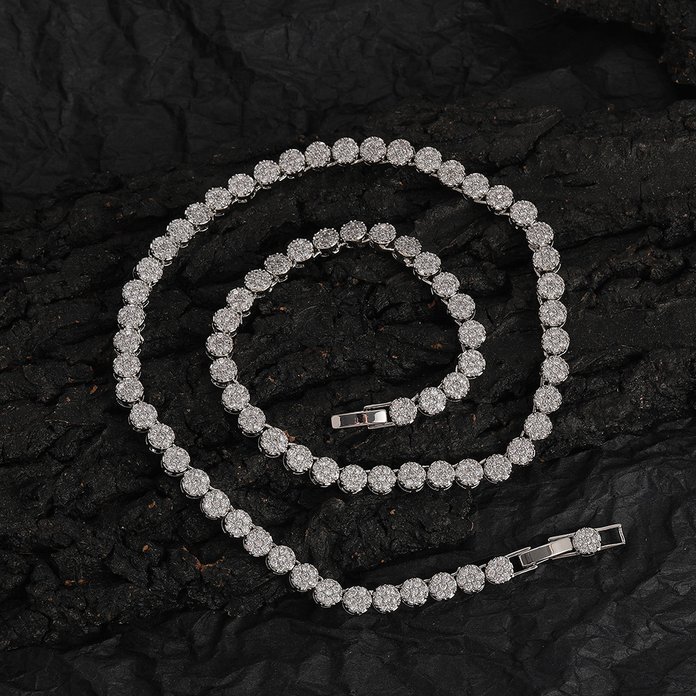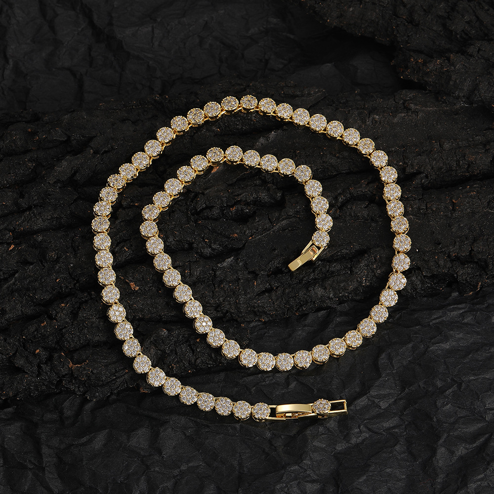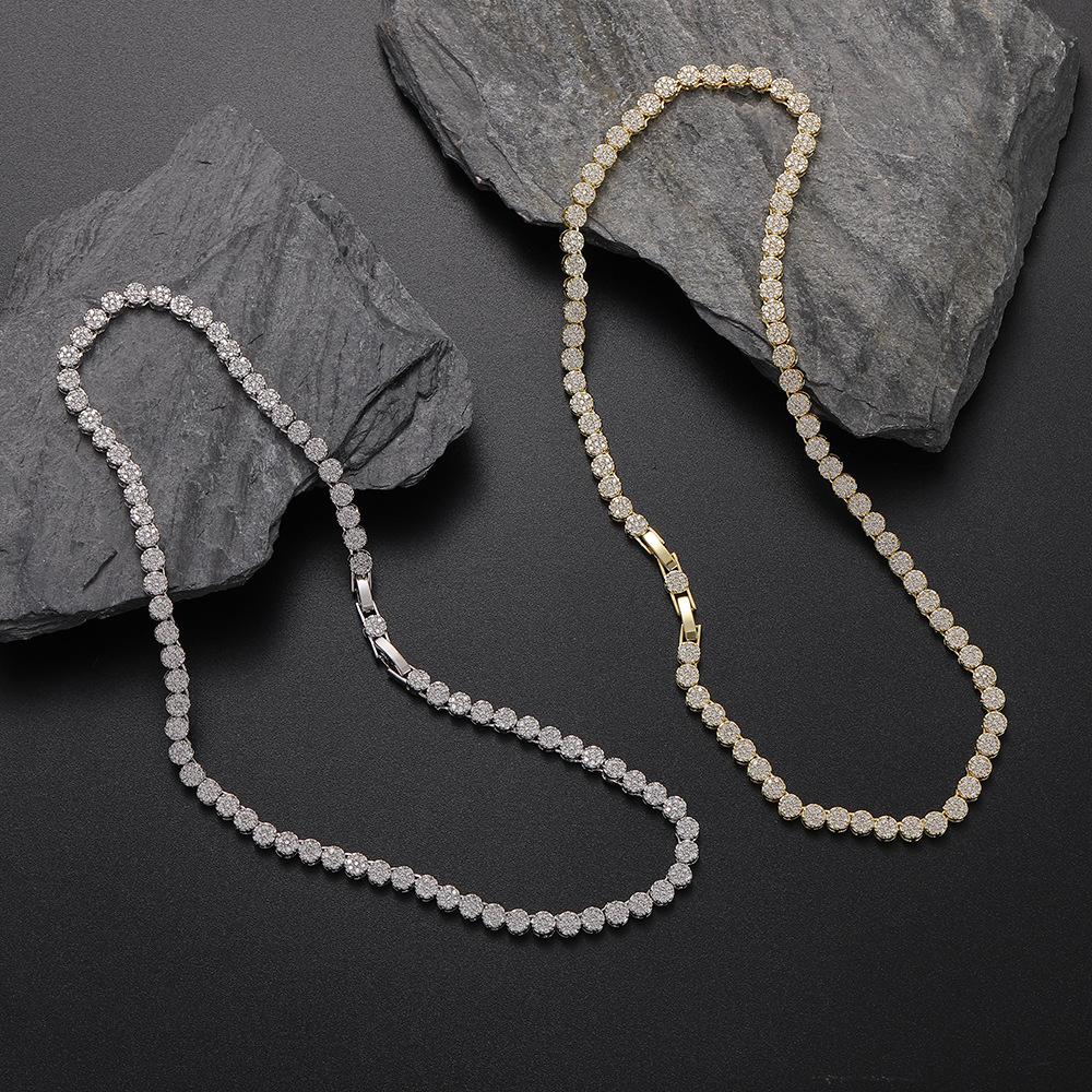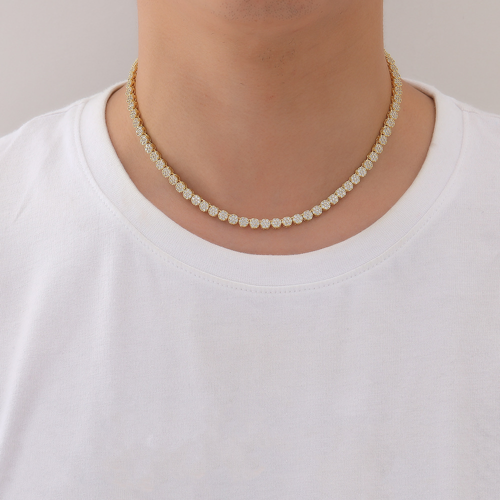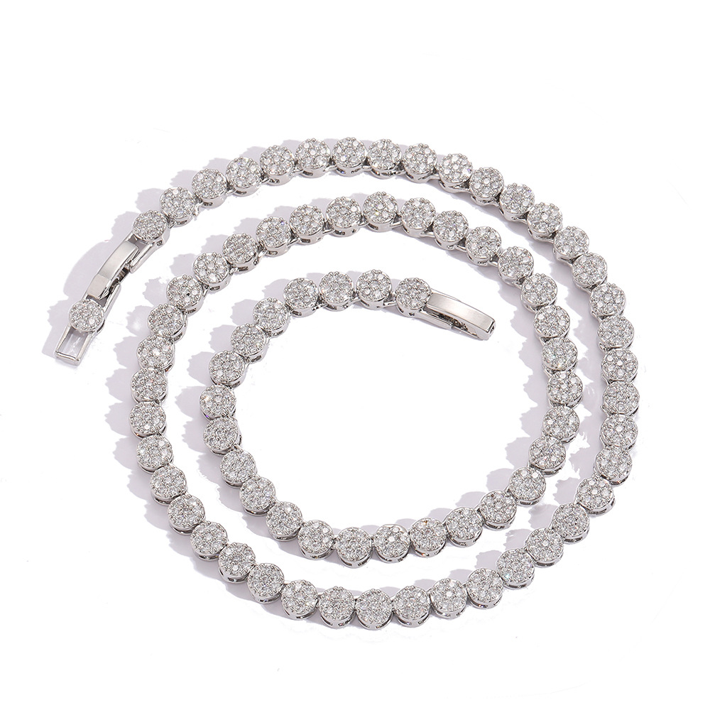 Hip Hop Copper Inlay Zircon 5mm Round Single Row Tennis Chain Necklace