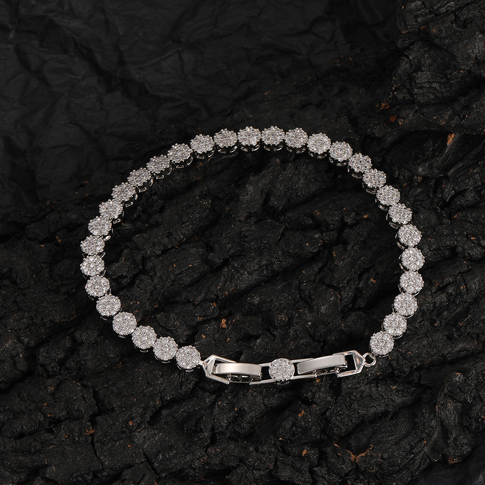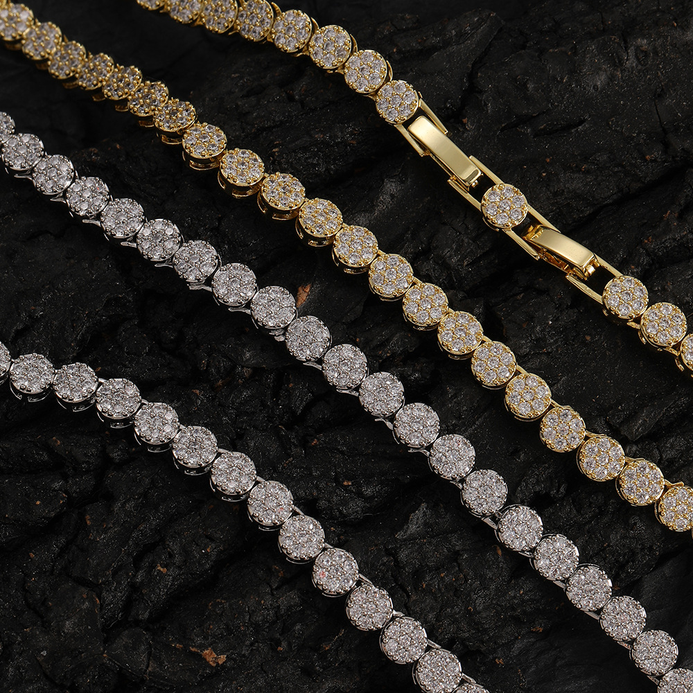 + Free ShippingHip Hop Copper Inlay Zircon 5mm Round Single Row Tennis Chain Necklace