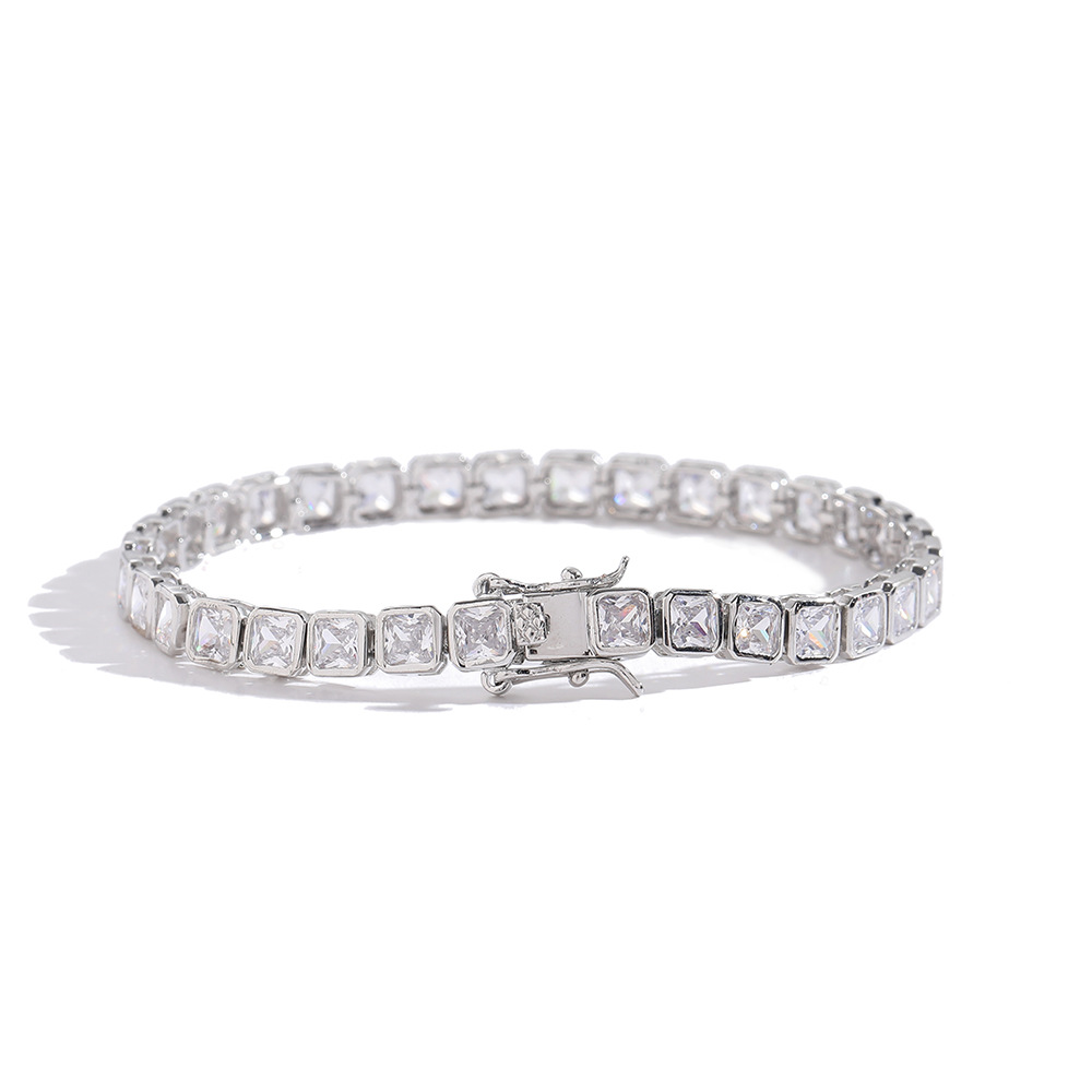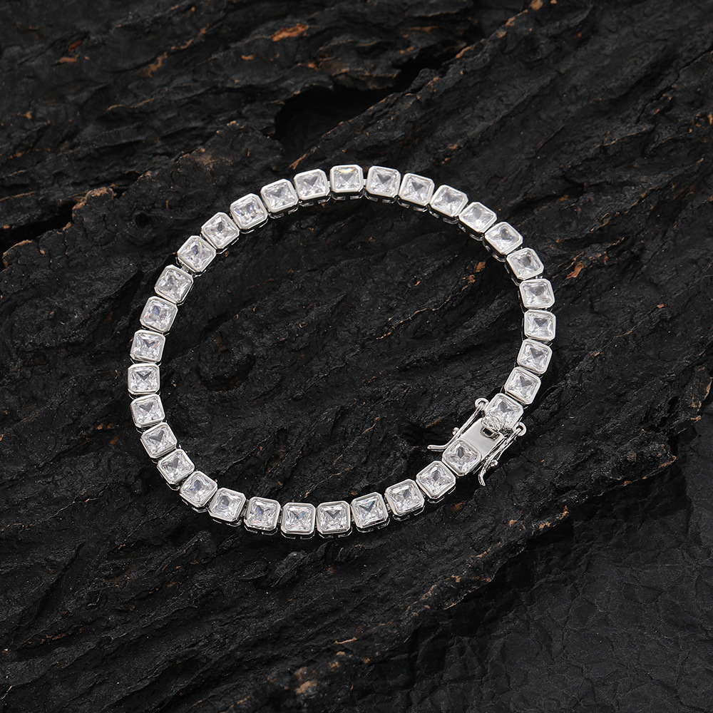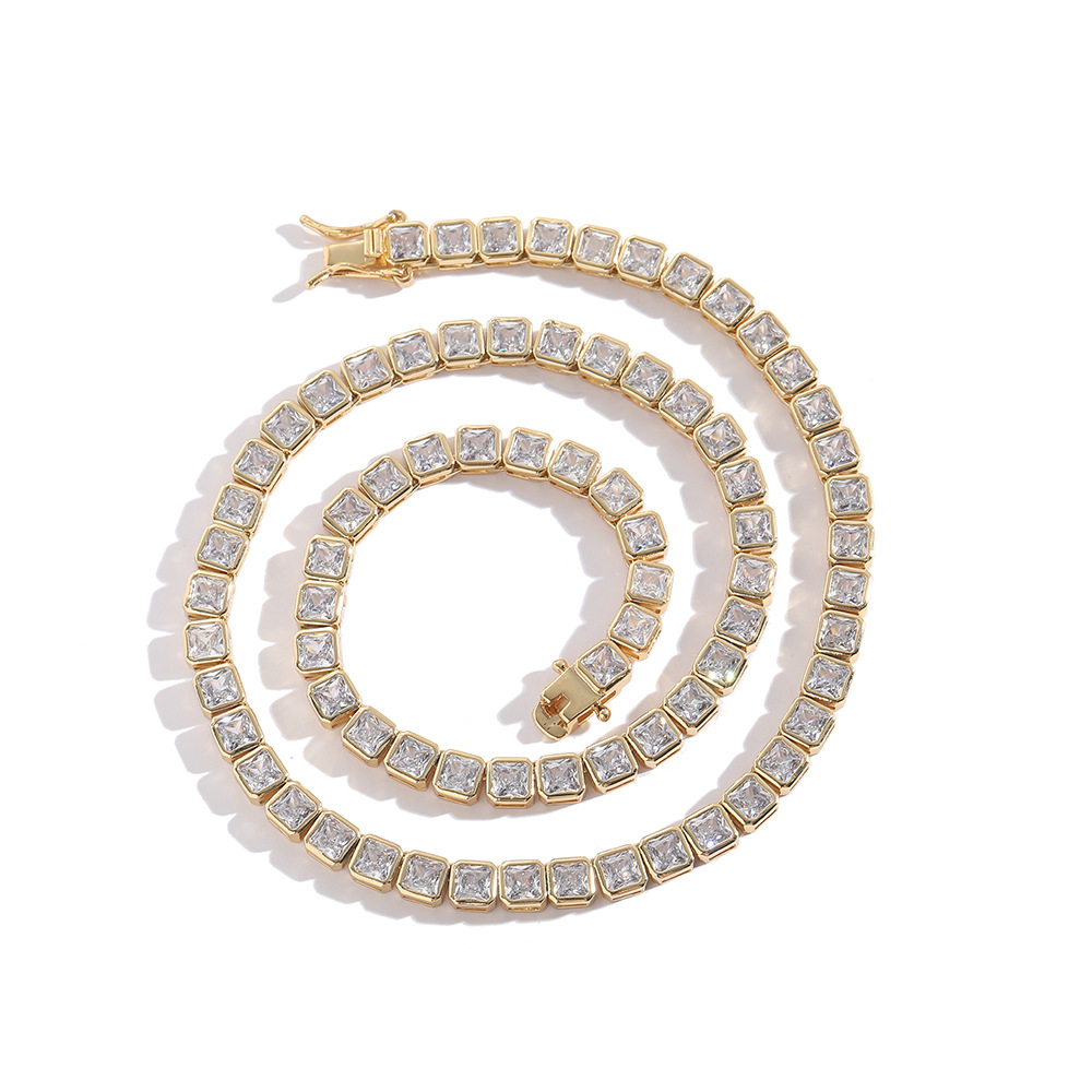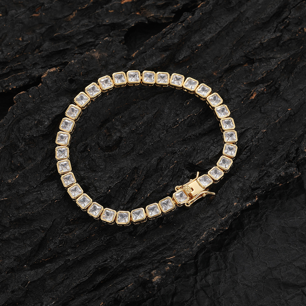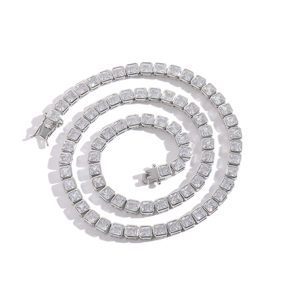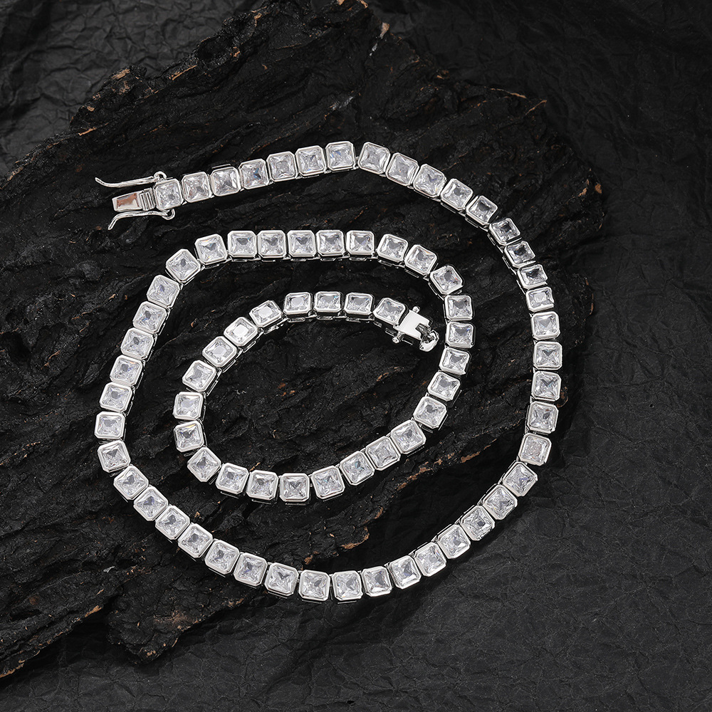 Hip Hop Copper Inlaid Zircon 4*4 Square Single Row Tennis Chain Necklace Bracelet