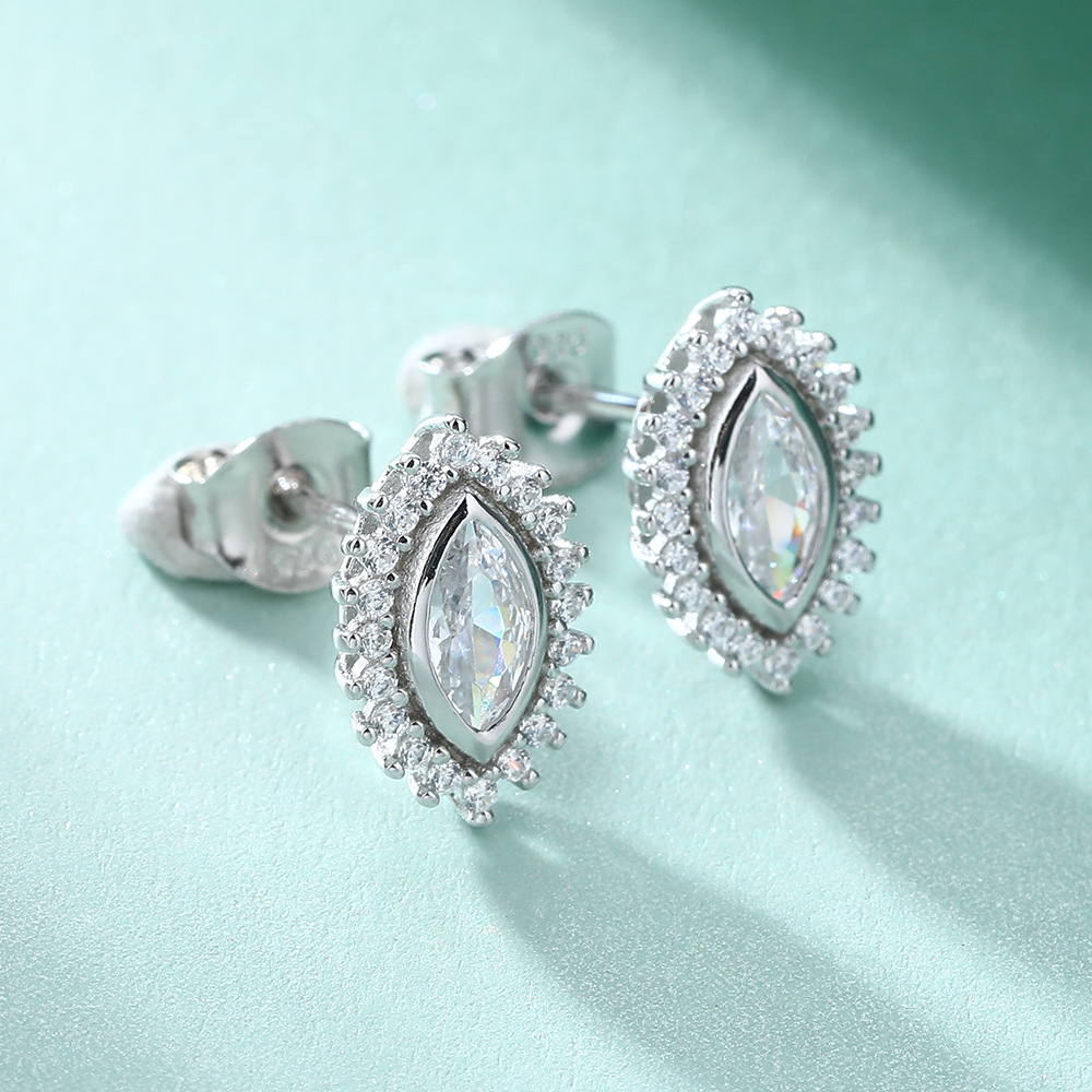 Marquise Zircon Sunflower 925 Silver Stud Ins Style Retro Sterling Silver Earrings