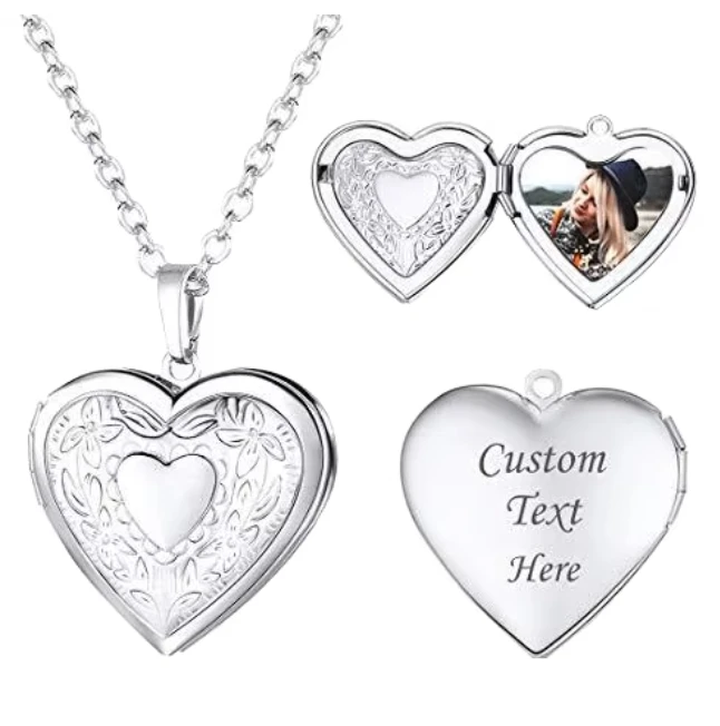 Men Women Floating Charm Locket Chain Heart Pendant Necklace not fade Silver Box Boys Photo Frame Pendants for Necklace quantity