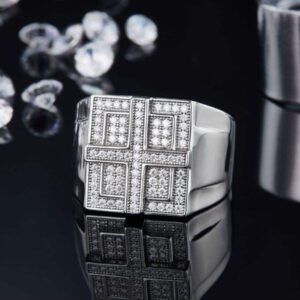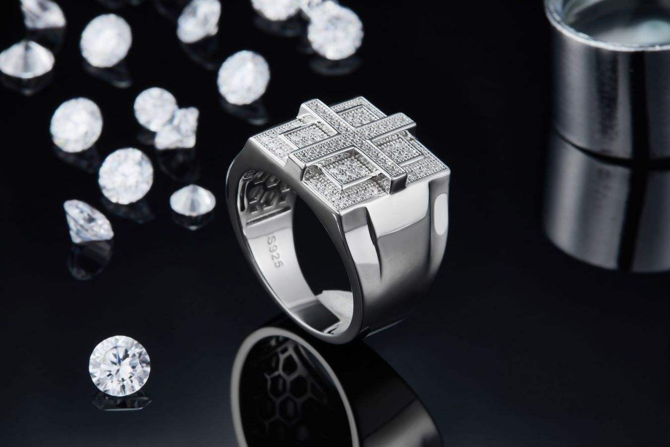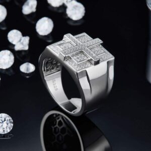 Men’s Moissanite Cross Ring, 925 Silver, Trendy Jewelry for Daily/Party Wear